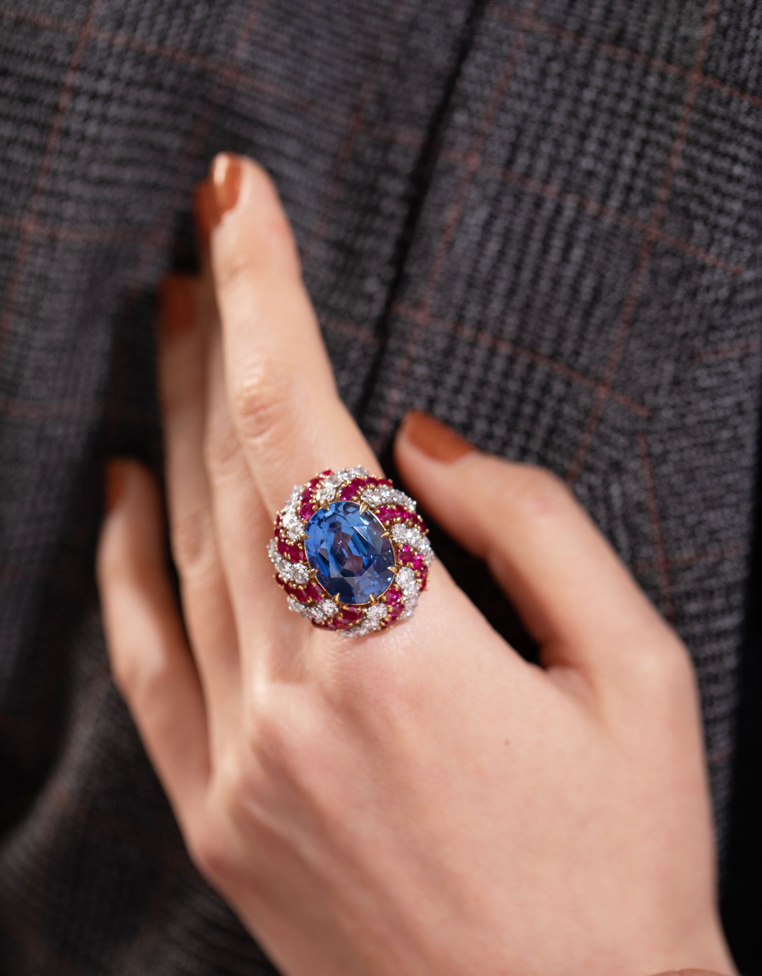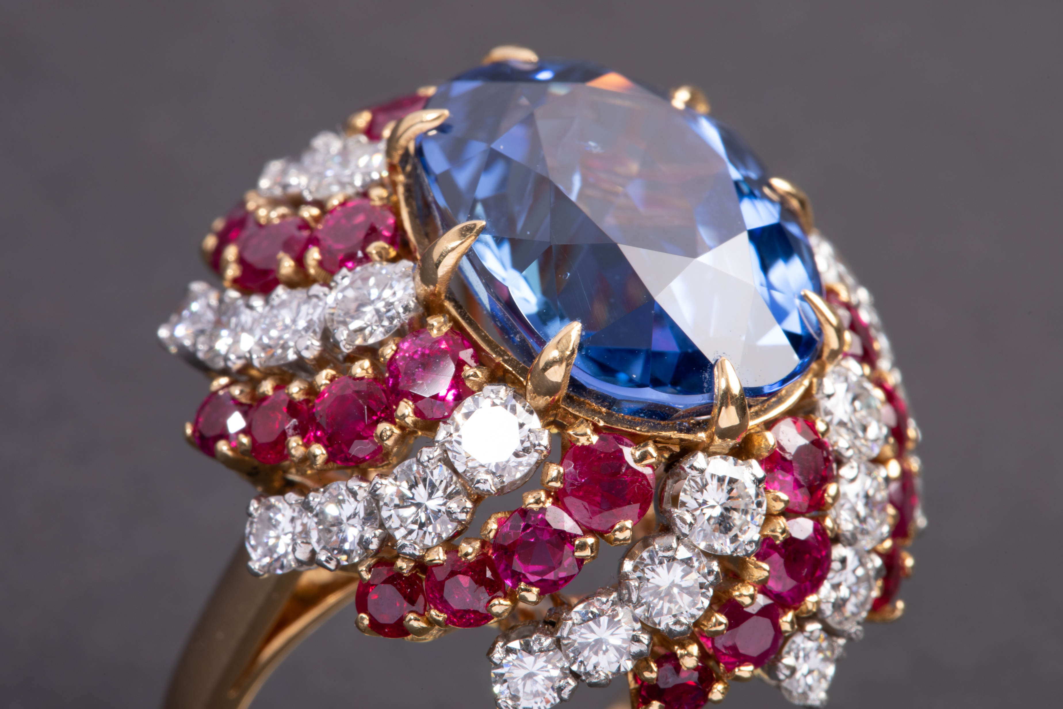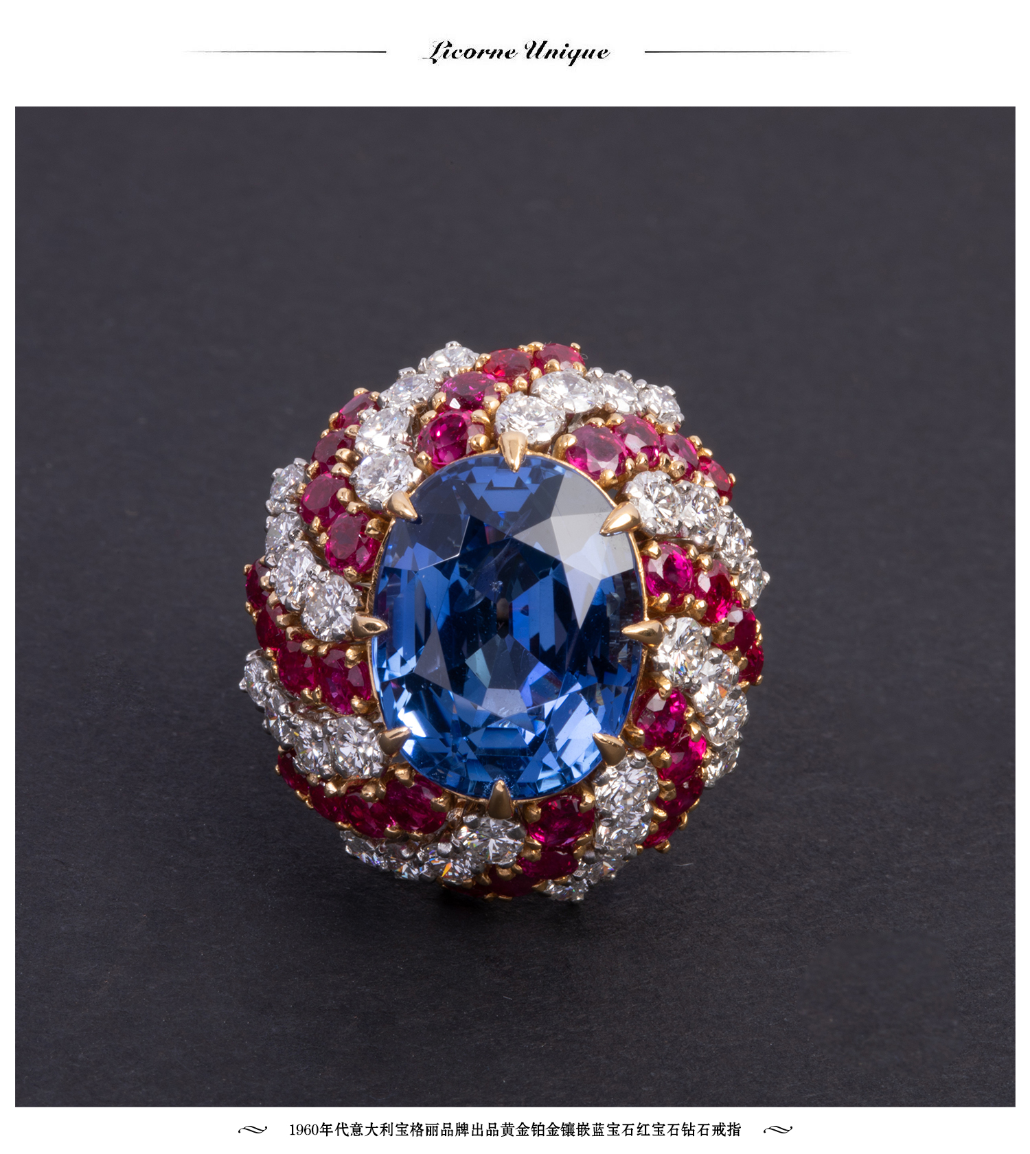 独角鹿西洋古董珠宝首饰宝格丽黄金铂金镶嵌蓝宝石红宝石钻石戒指