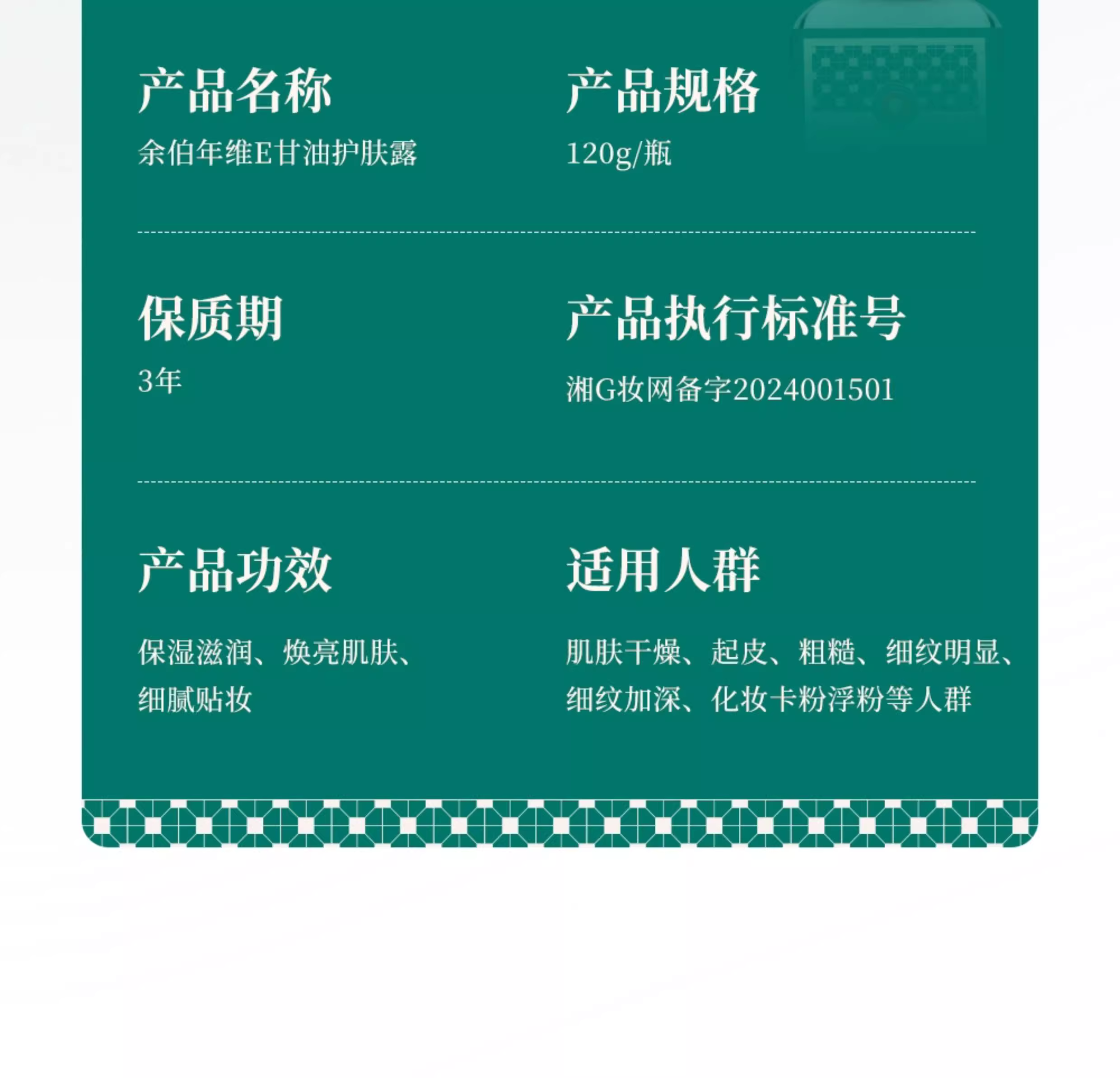 【120g*3瓶】余伯年升级款维E甘油护肤露 老国货品牌 秋冬必备 保湿滋润 煥亮肌肤 肌肤干燥、起皮、粗糙 细腻贴妆 不卡粉浮粉
