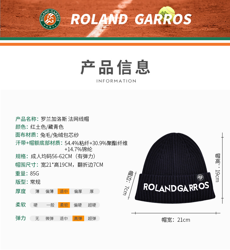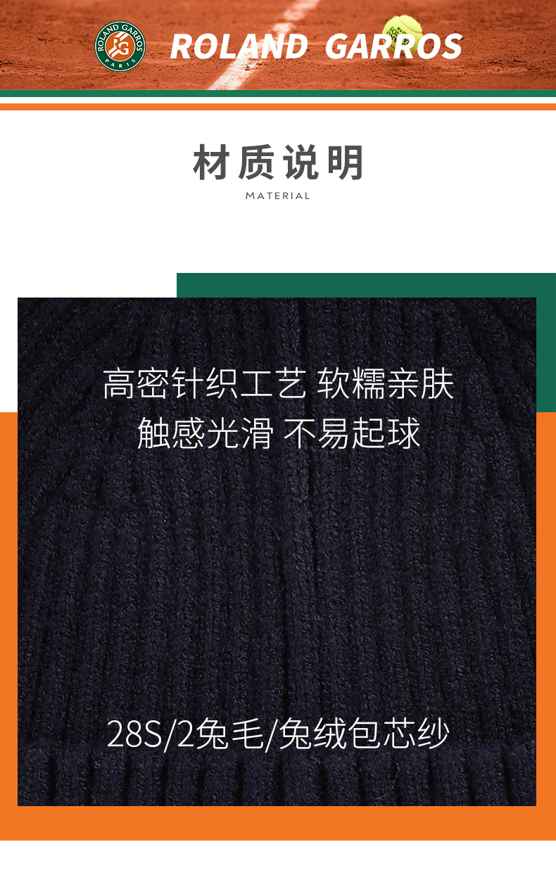 罗兰加洛斯法网线帽2022秋冬百搭针织帽子大头围保暖毛线帽男女