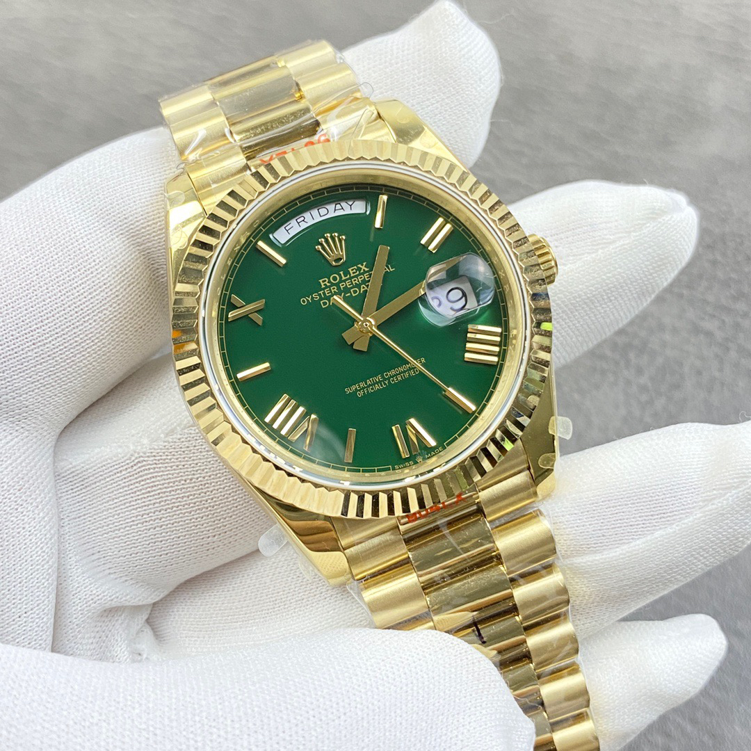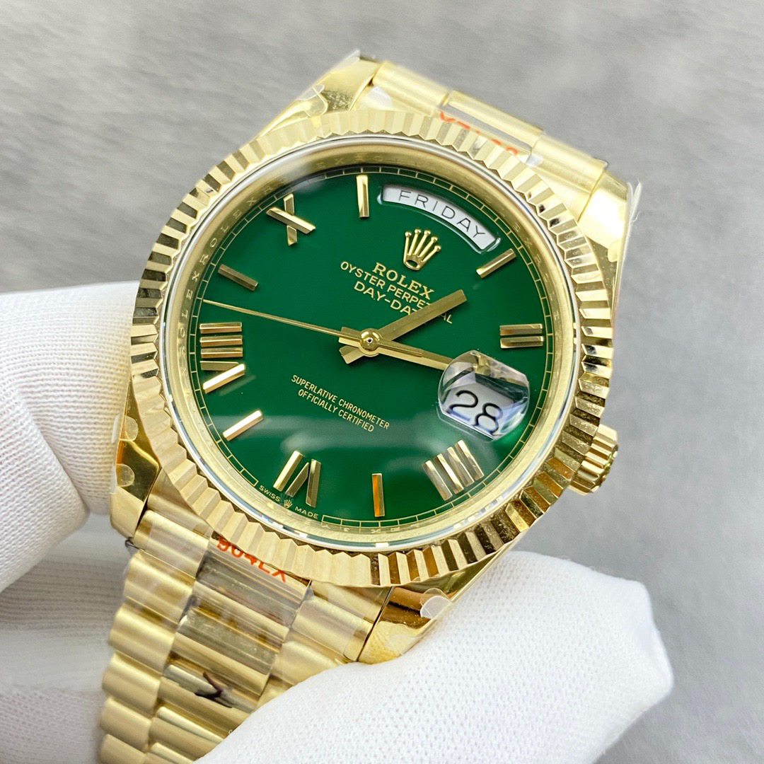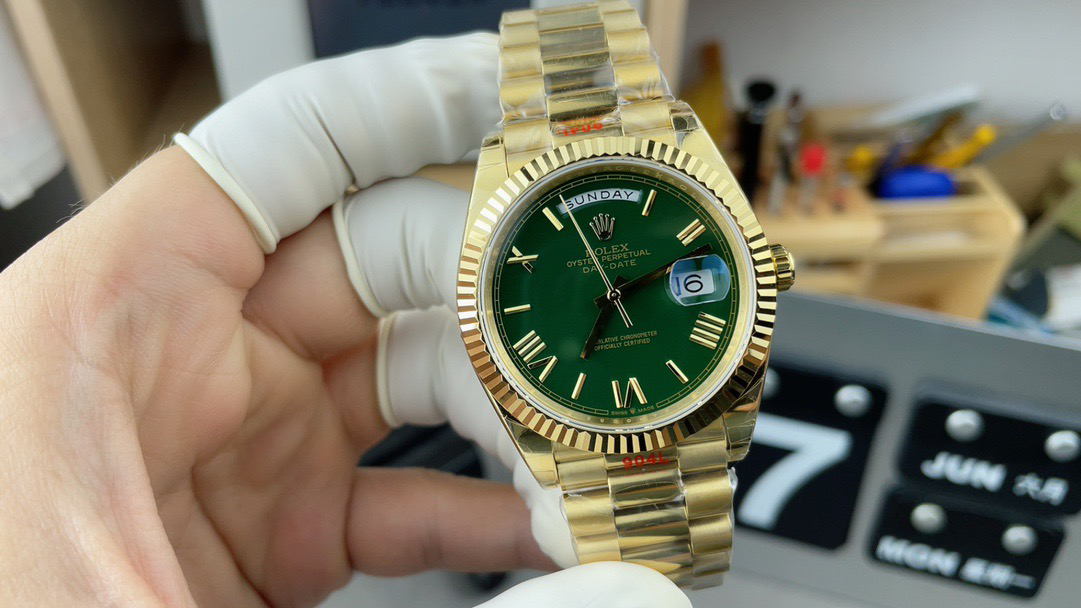 NOOB劳力士星期日志型40『赌桌绿』 1⃣️ 蓝宝石镜面,日历2.5倍放大镜,效果同步原版。 2⃣️蚝式表壳结构,一体中层表壳,旋入式底盖及上链表冠整个手表基于正品original原版开模❕❕❕