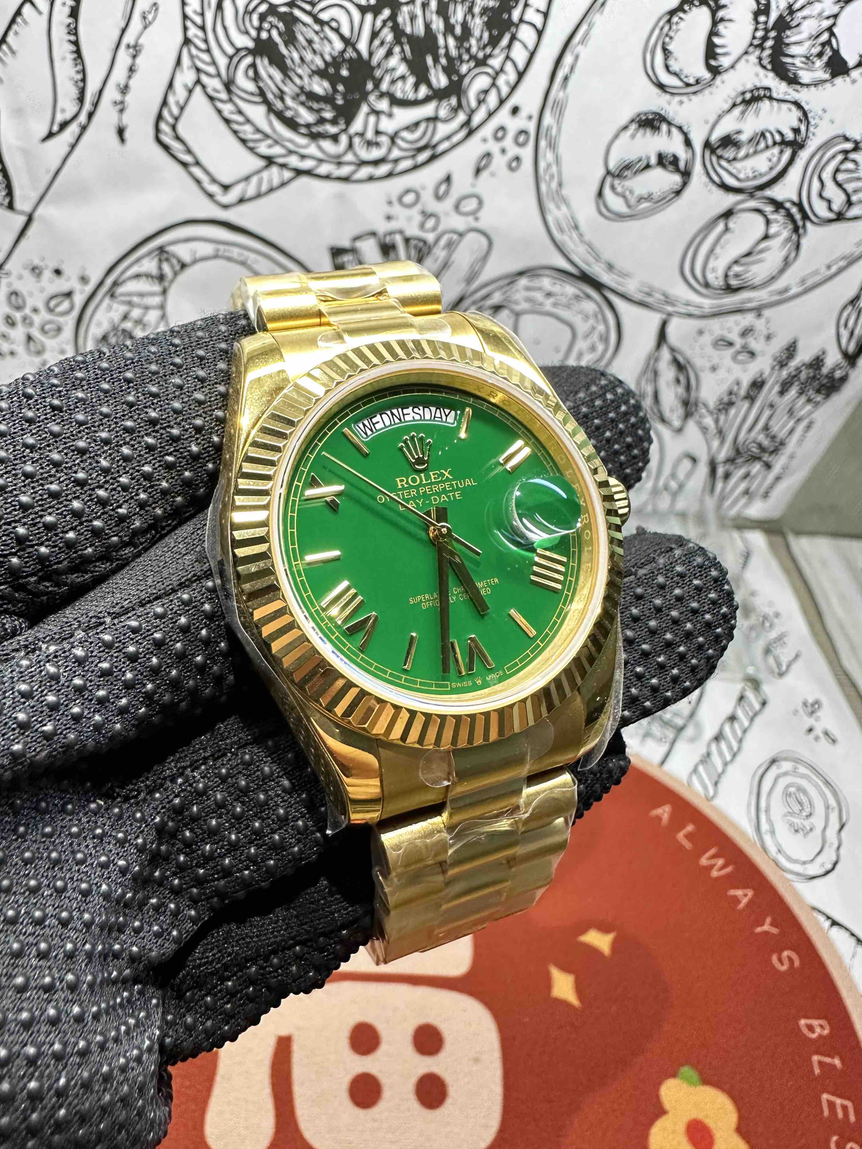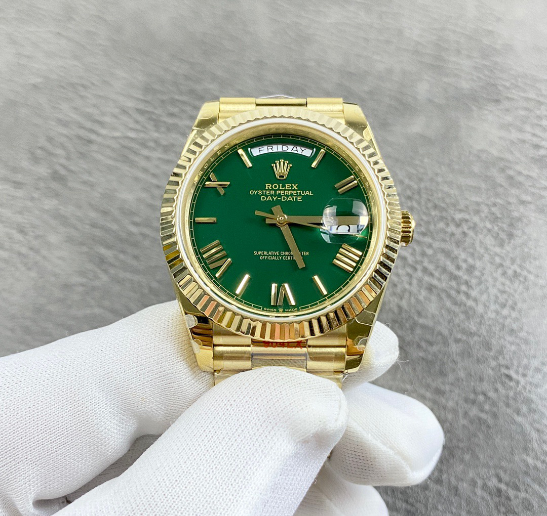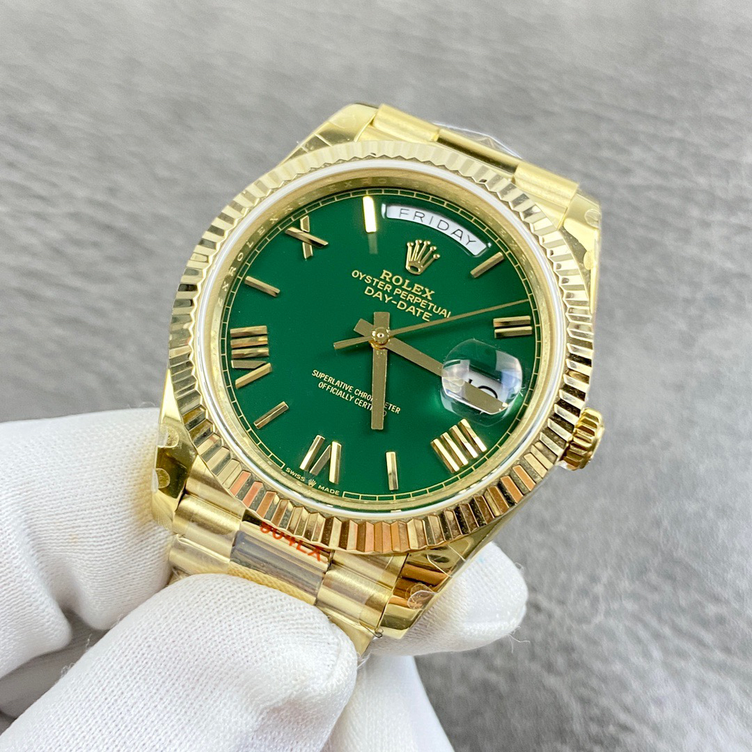 NOOB劳力士星期日志型40『赌桌绿』 1⃣️ 蓝宝石镜面,日历2.5倍放大镜,效果同步原版。 2⃣️蚝式表壳结构,一体中层表壳,旋入式底盖及上链表冠整个手表基于正品original原版开模❕❕❕