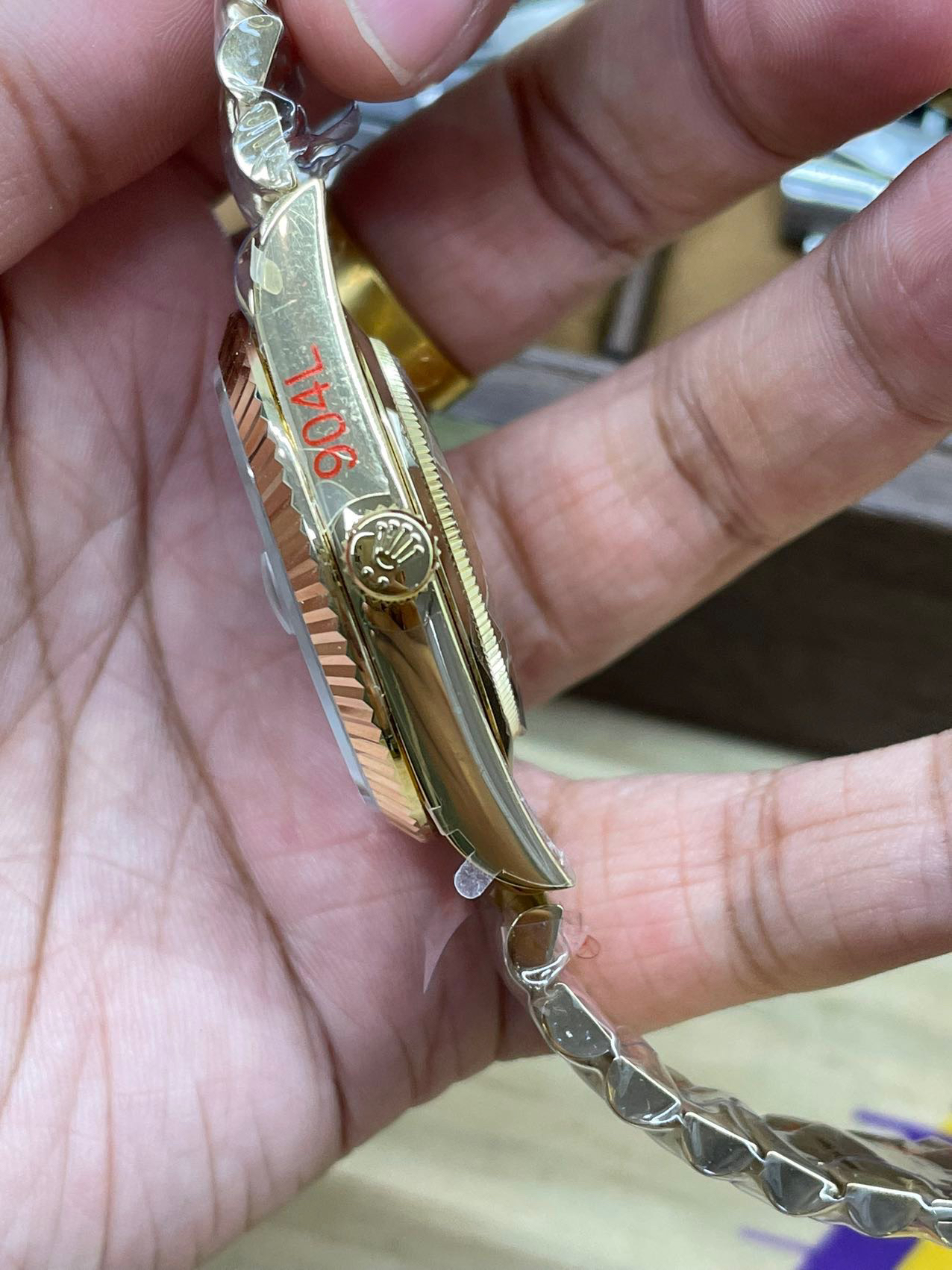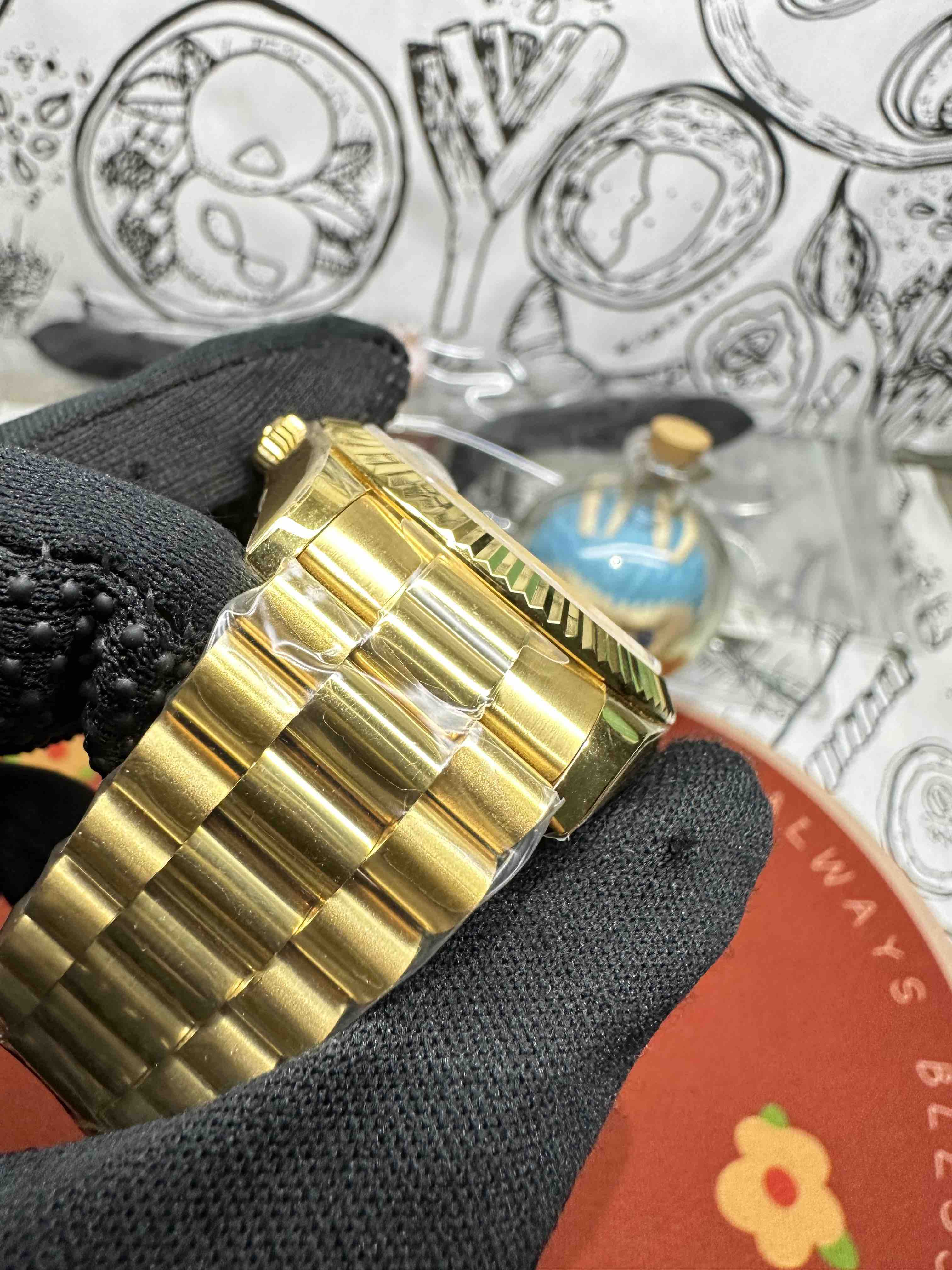 4⃣️搭载2836或者搭配正品一致的定制版一体机芯3255自动上链机芯,快调瞬跳星期日历、做到调时、厚度、结构同步原版。NOOB劳力士星期日志型40