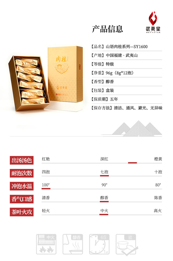 武夷星山语肉桂sy1600礼盒装96g 武夷岩茶大红袍正岩肉桂乌龙茶叶