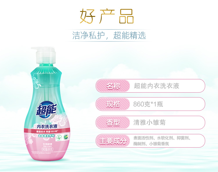 超能内衣洗衣液860g+内衣皂101g*4块