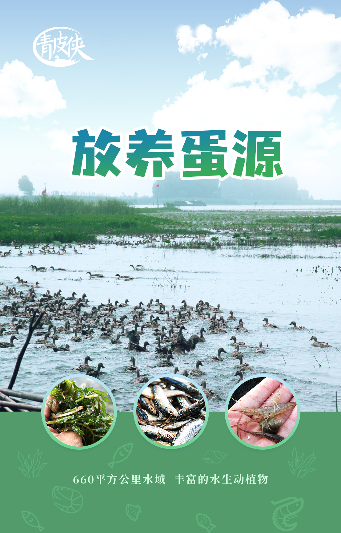 基地有着660平方公里的放养水域,鸭子都是自然放养,自由自在。