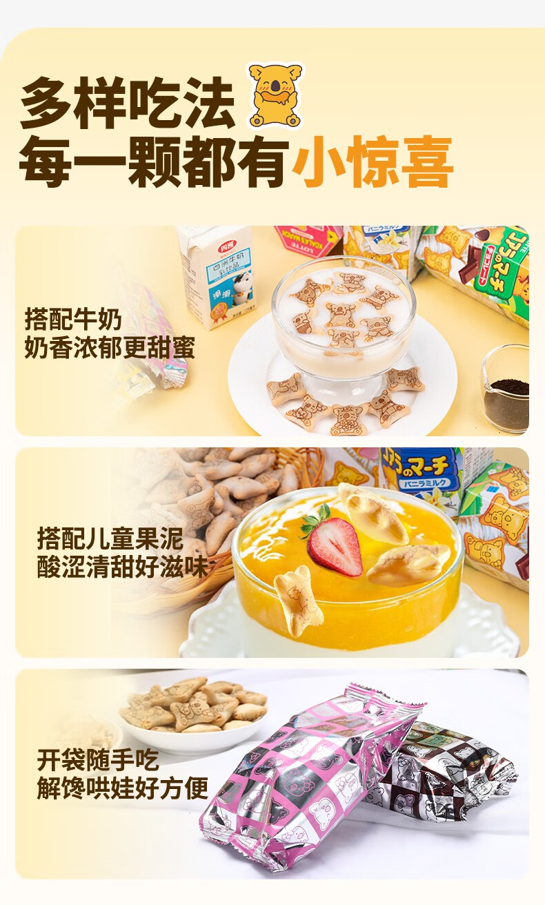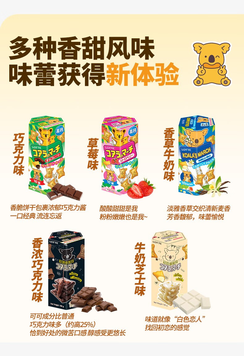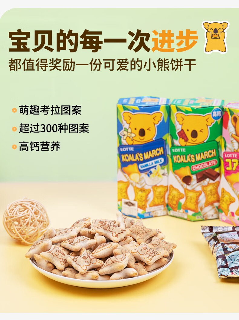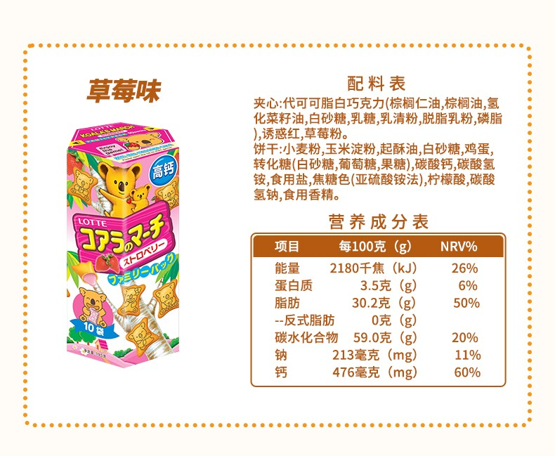 乐天LOTTE小熊饼干195克*3盒 草莓味