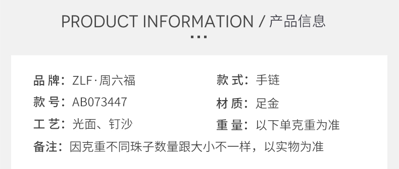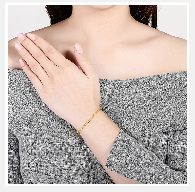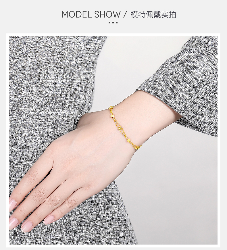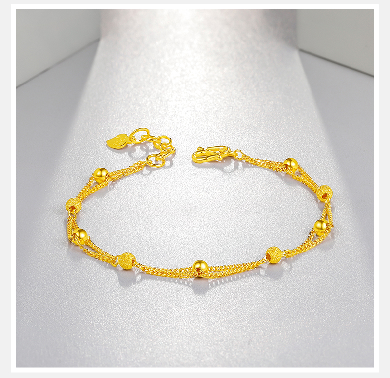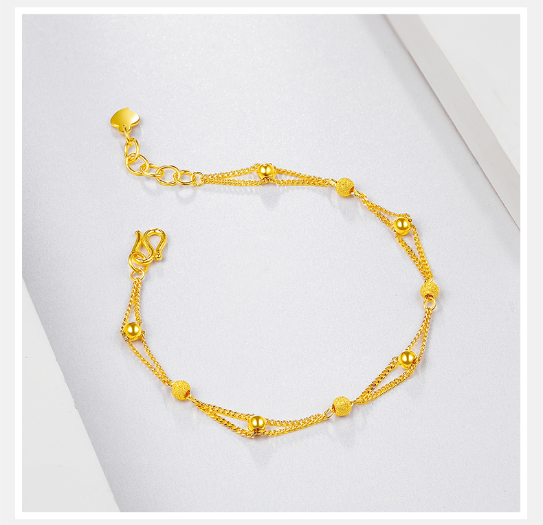 周六福黄金手链女足金转运珠光砂金珠双层手链计价送女友送女友礼物