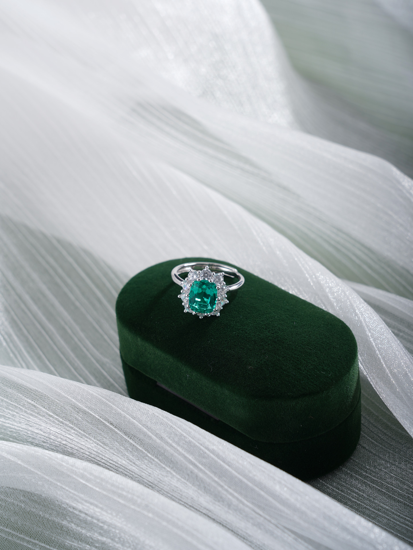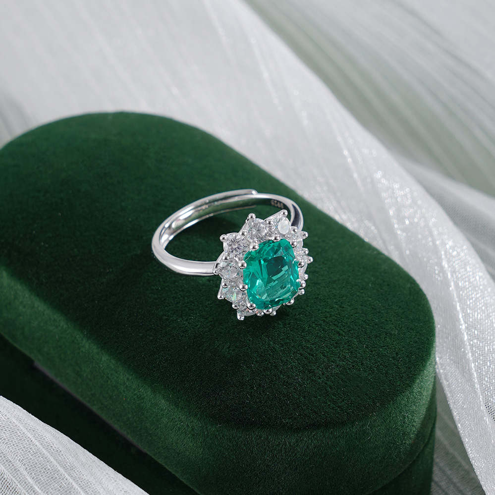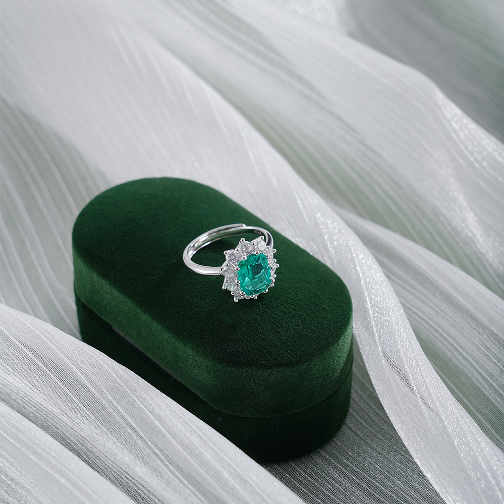 【寓意】:采用S925纯银为戒托,以锆石勾勒花瓣柔弧,祖母绿镶嵌,如晴空下涟漪凝成的花影,象征生命在时光中绚烂生长,前程似锦。