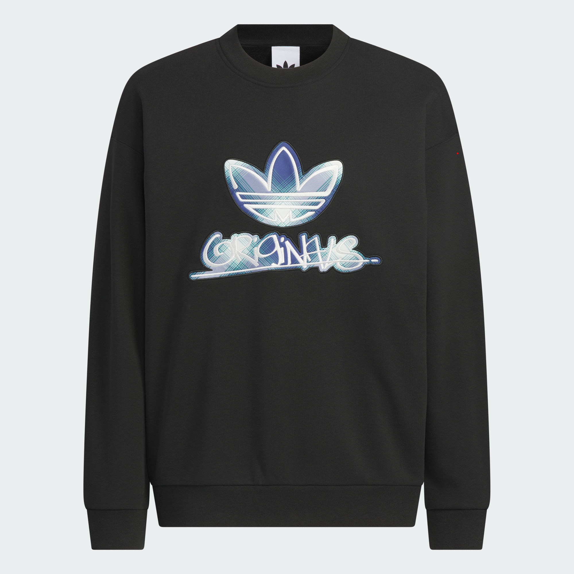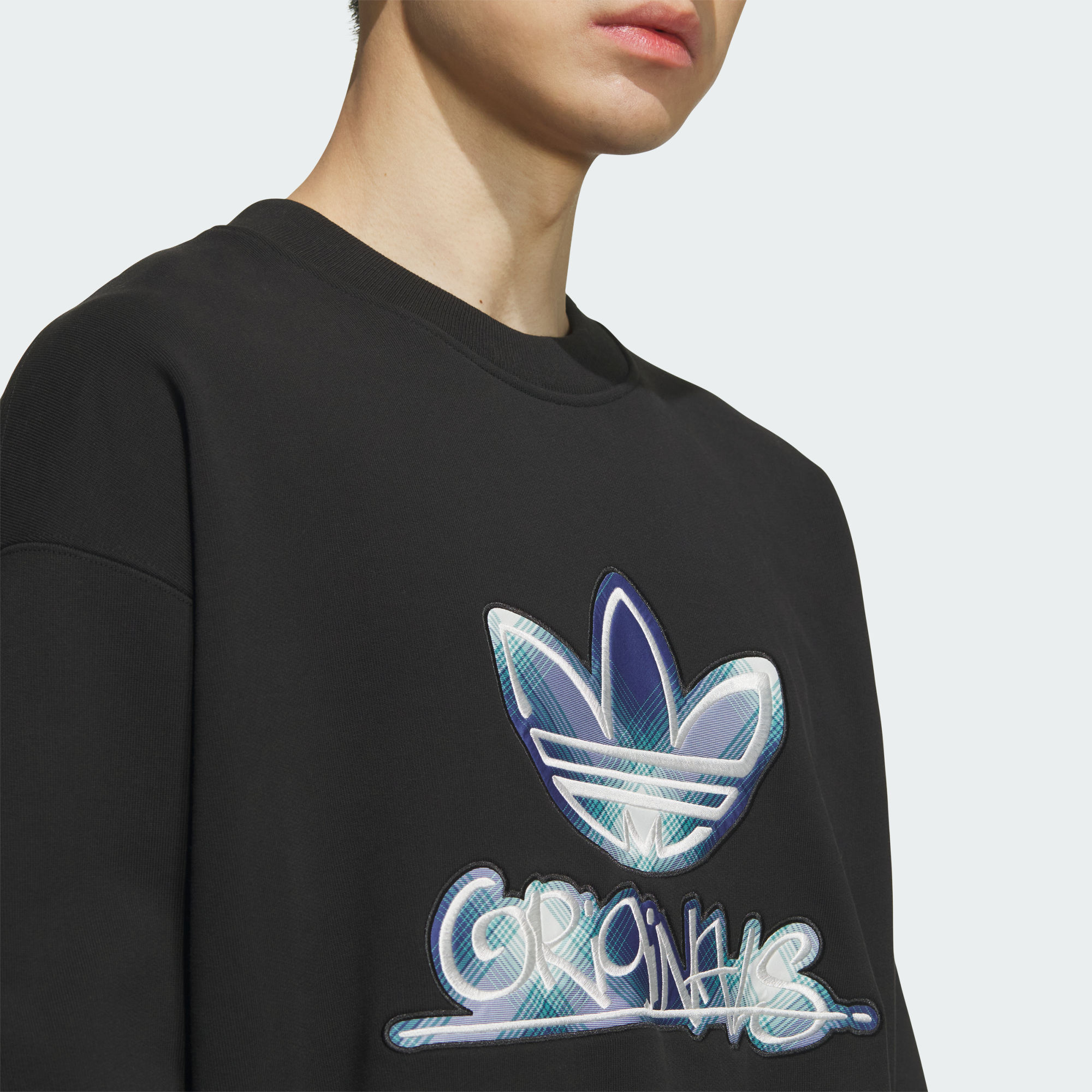 Adidas阿迪达斯SWEAT CREW 男子毛圈布格纹印花运动宽松卫衣套头衫KC0116