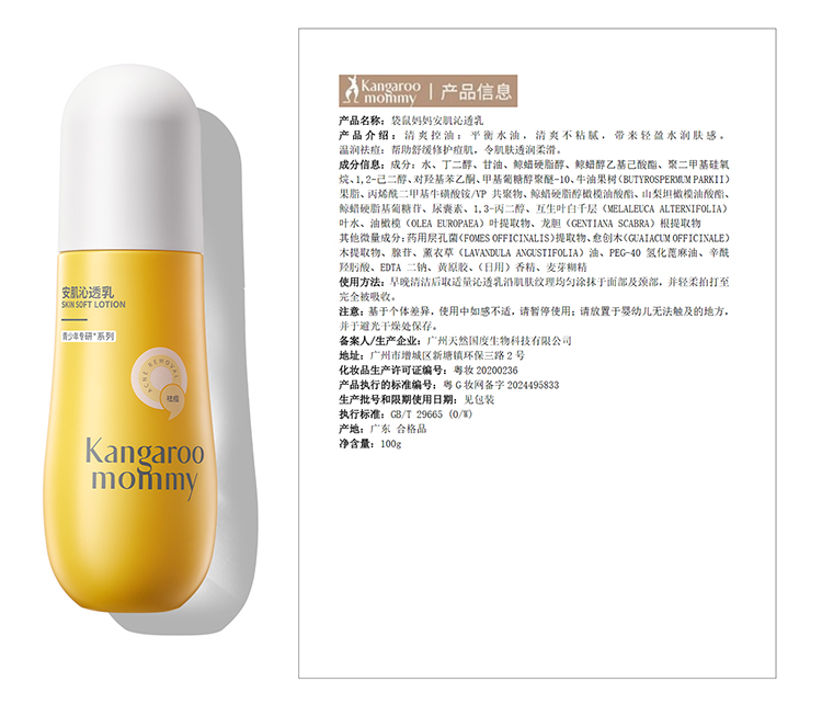 【祛痘沁透乳】控油祛痘 舒缓泛红 清爽保湿 深润快吸收 袋鼠妈妈安肌沁透乳100g