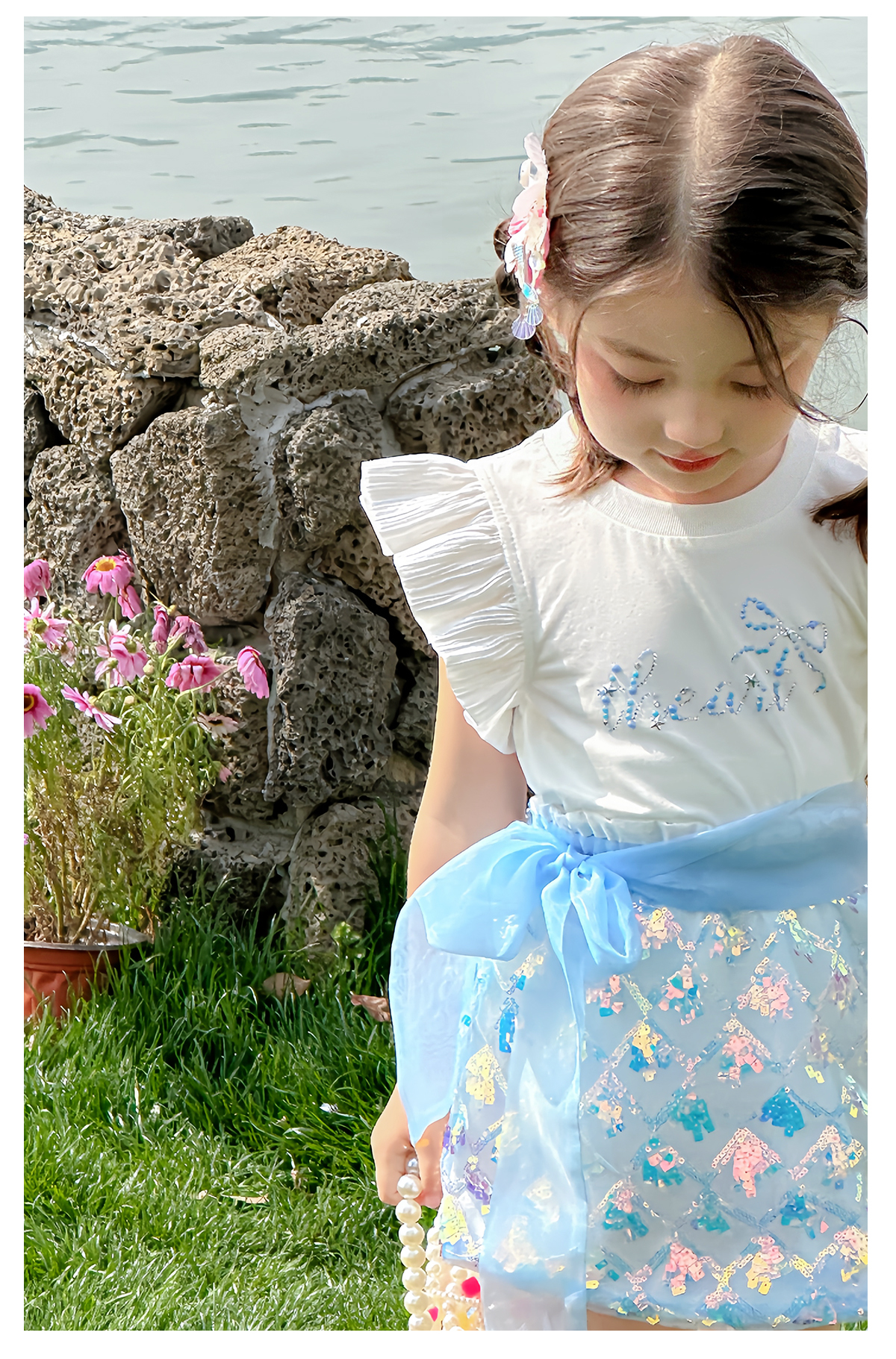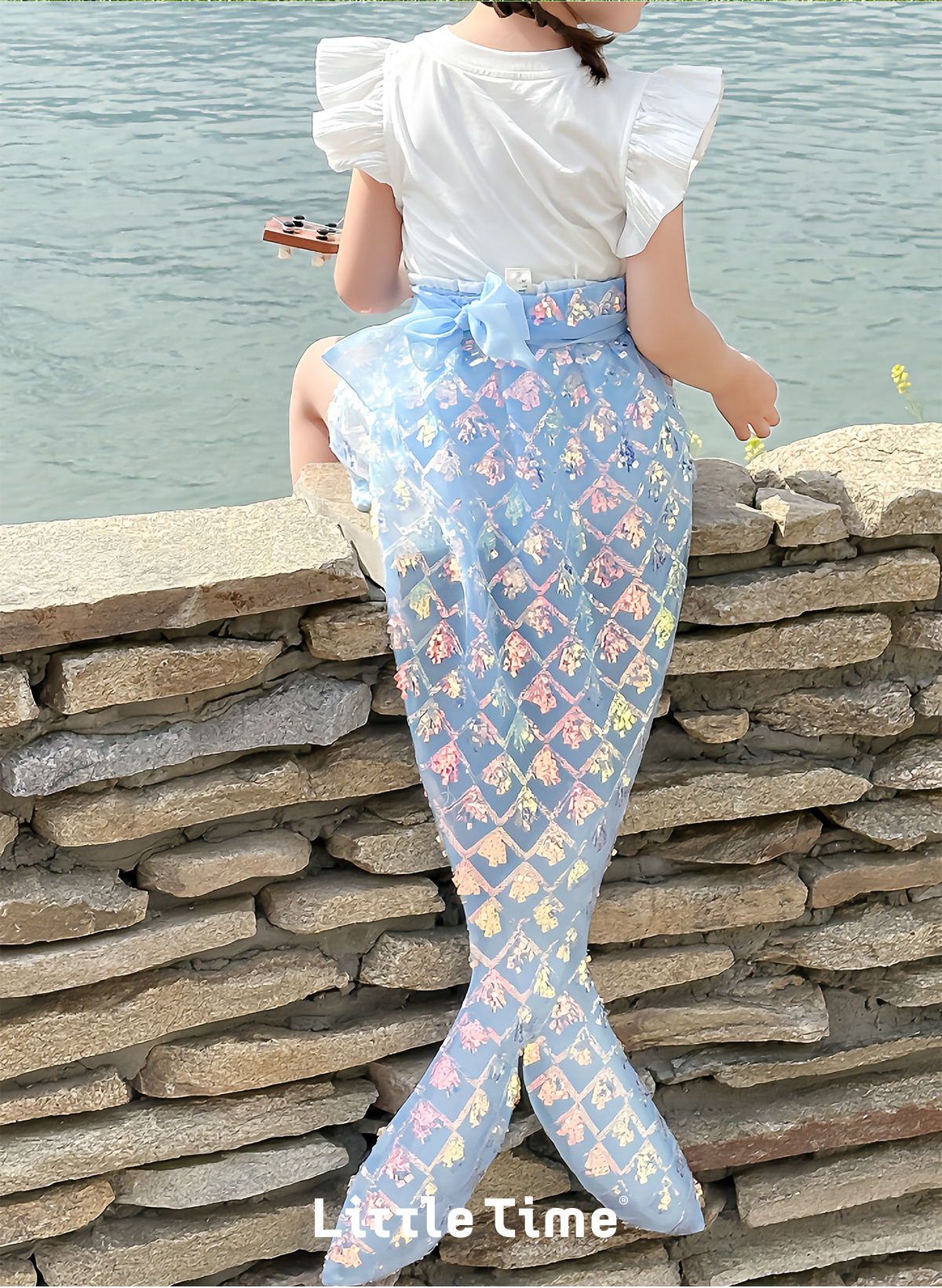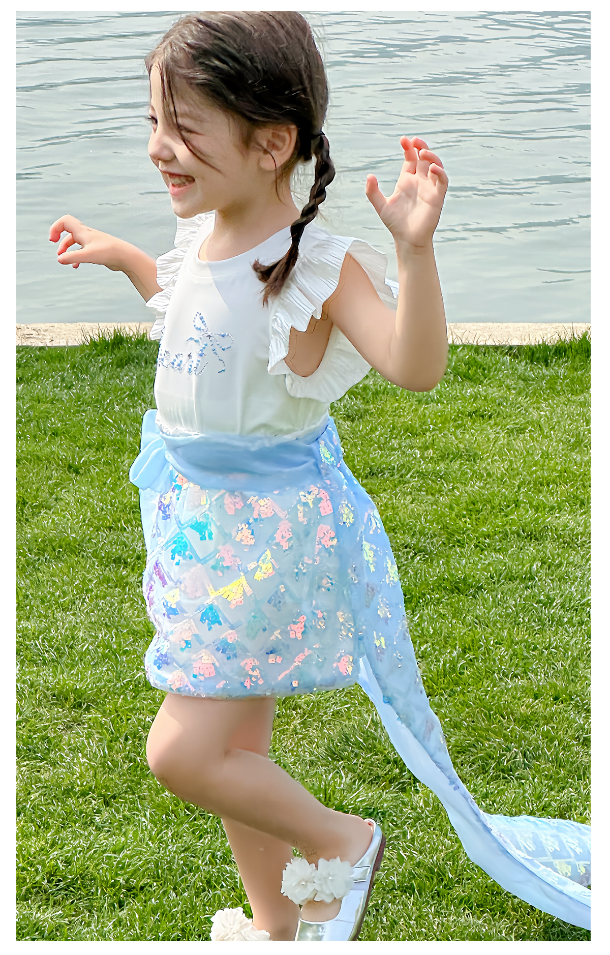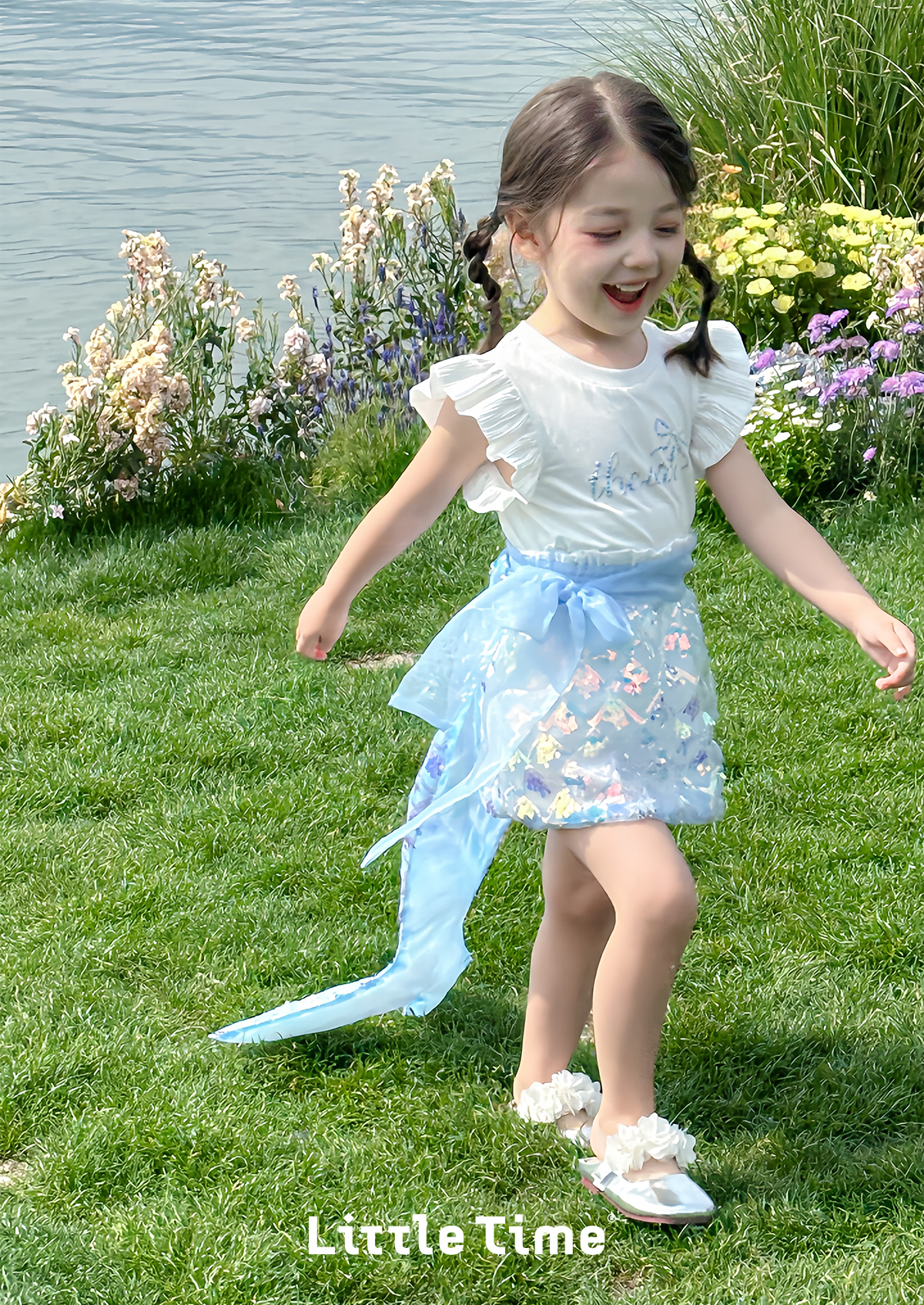 littletime女童T恤2025春夏新款儿童洋气时尚美人鱼短袖T恤半裙