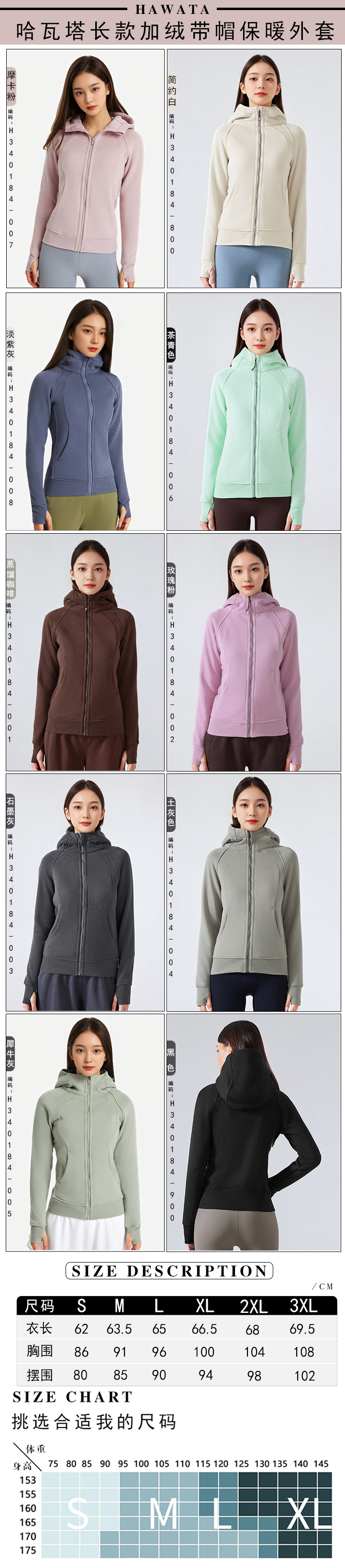 哈瓦塔(长款)加绒带帽保暖外套H340184