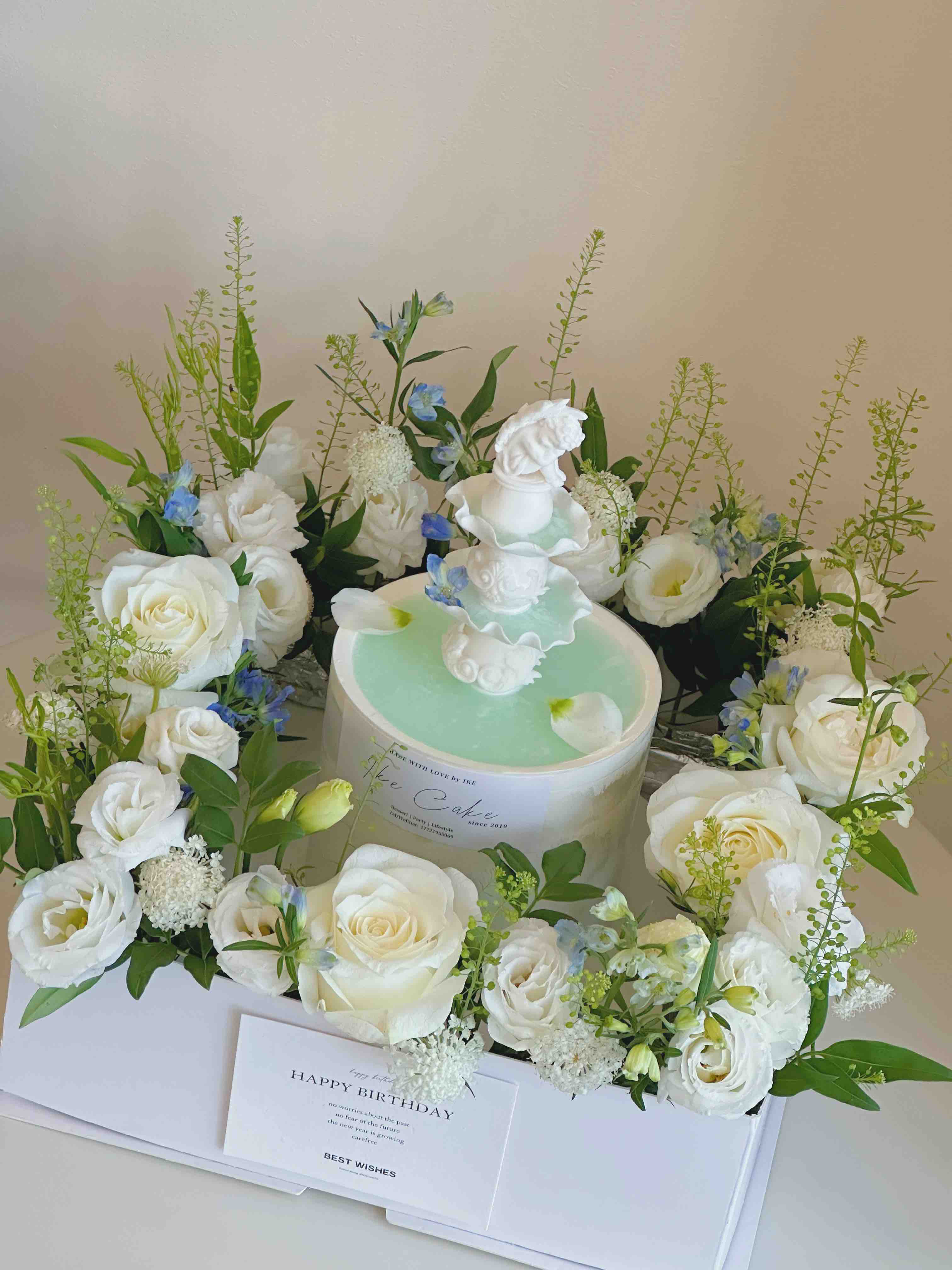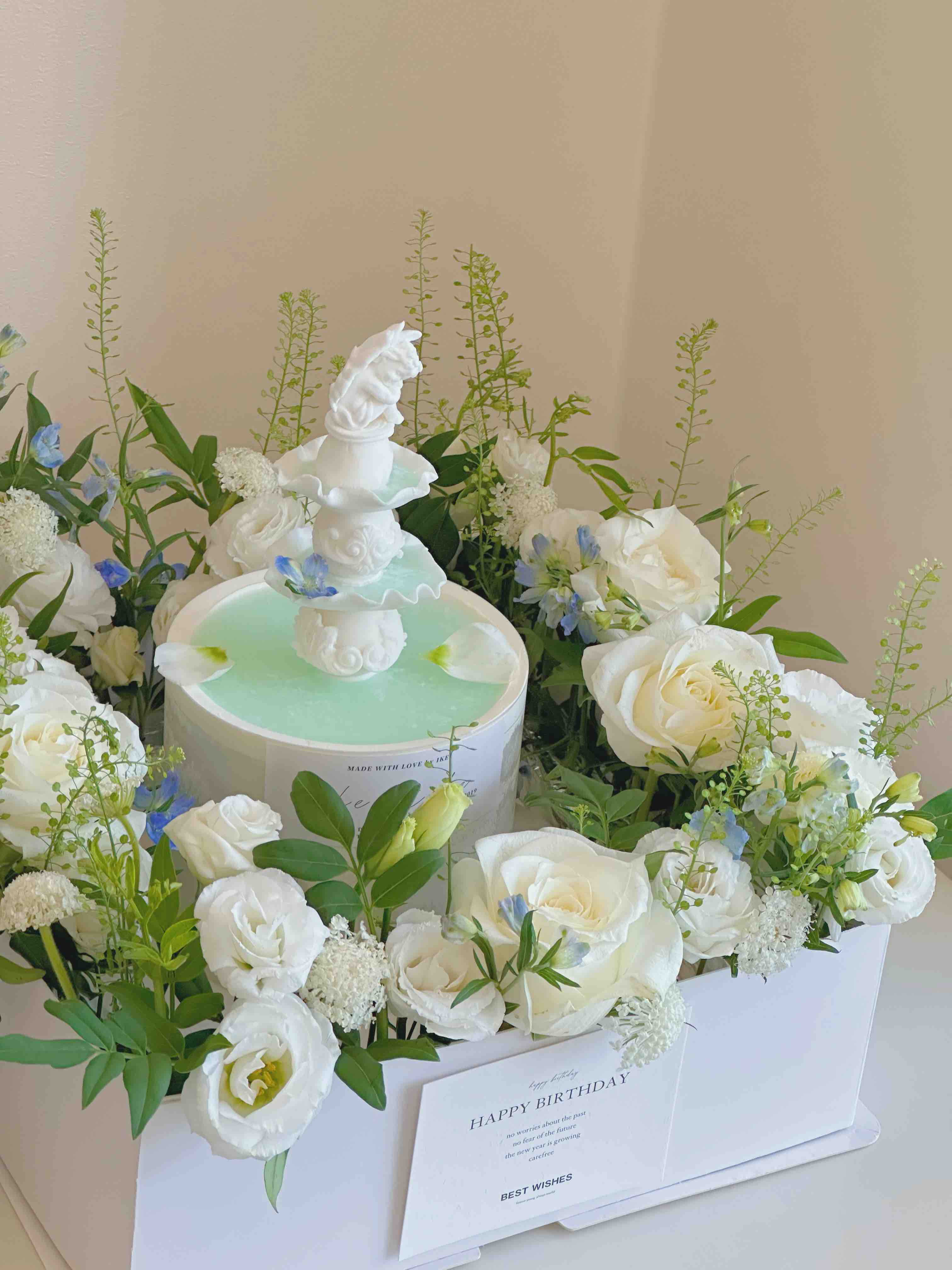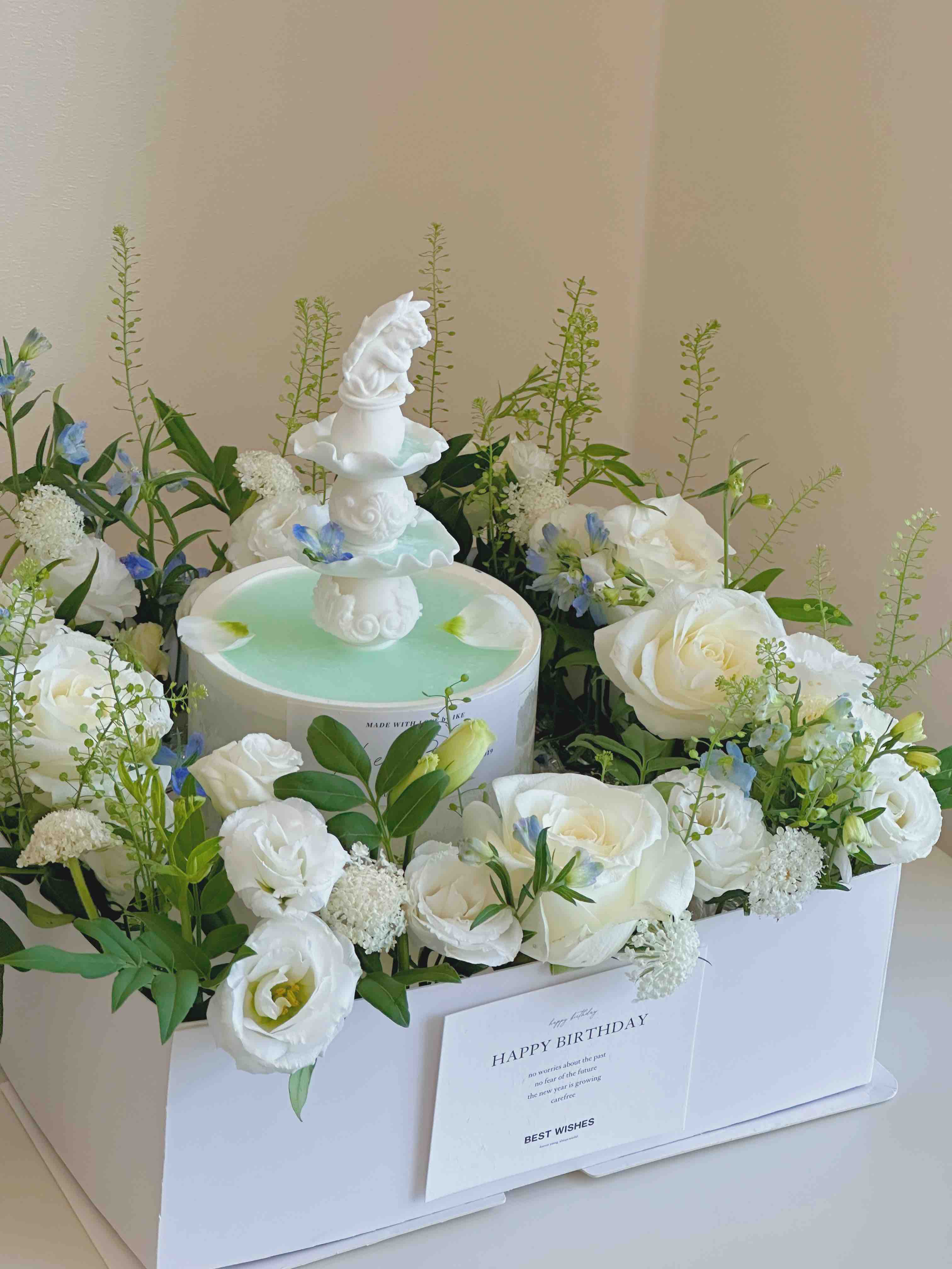 白玫瑰许愿池 (鲜花不一定能买到一样的,按色系搭配)