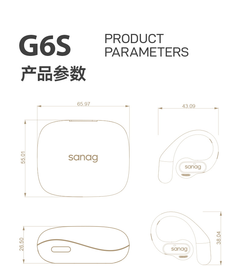 SANAG【超纤量行业领创】G6S蓝牙耳机挂耳式骨传导概念真无线运动跑步开放式耳机高端礼物