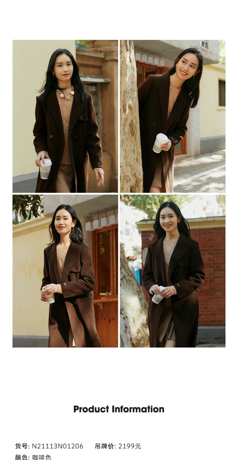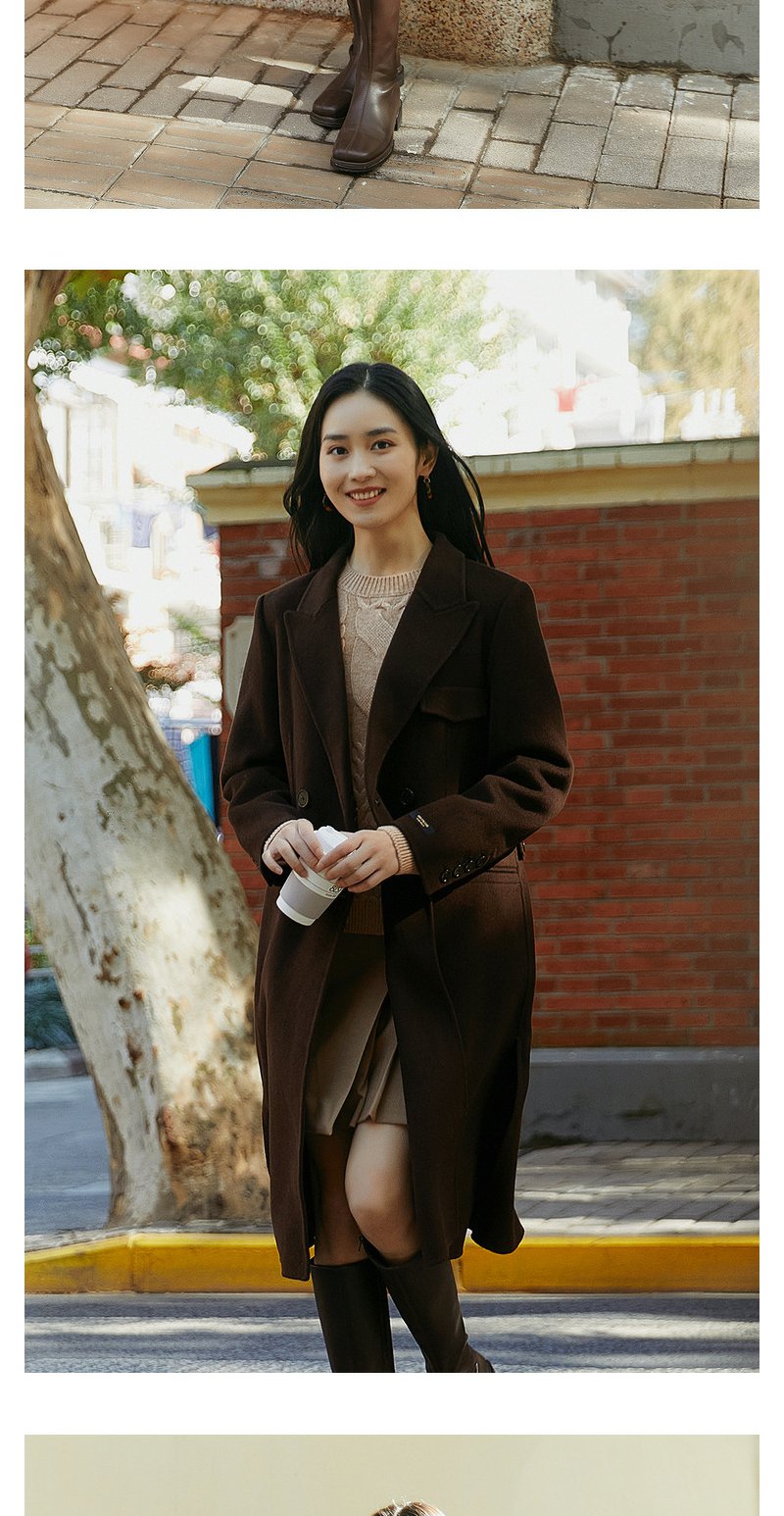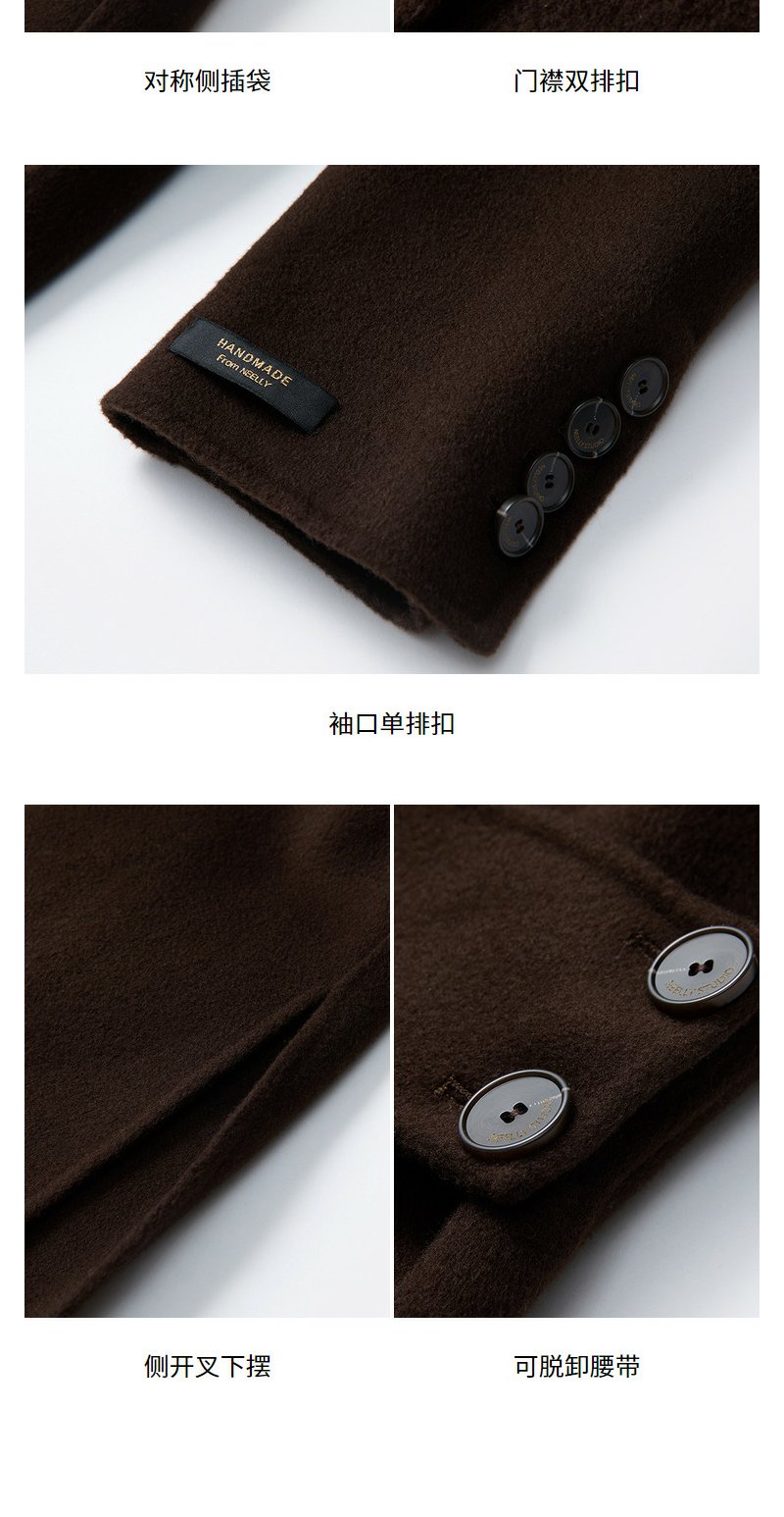 NEELLY纳俪冬季翻驳领双面呢大衣女双排扣可脱卸腰带中长款外套N21113N01206