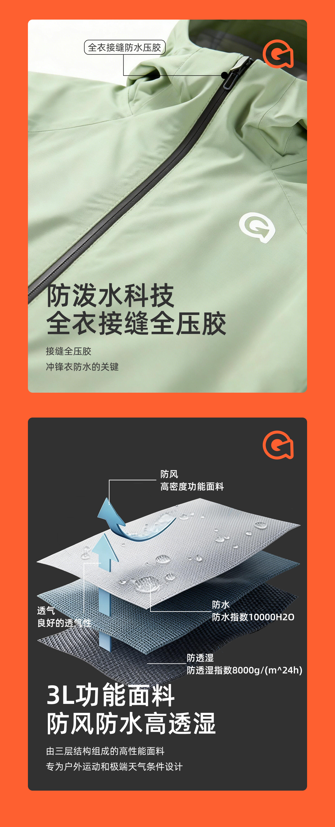 果凡男女款防风防水透湿冲锋衣外套户外运动适用GRD21265