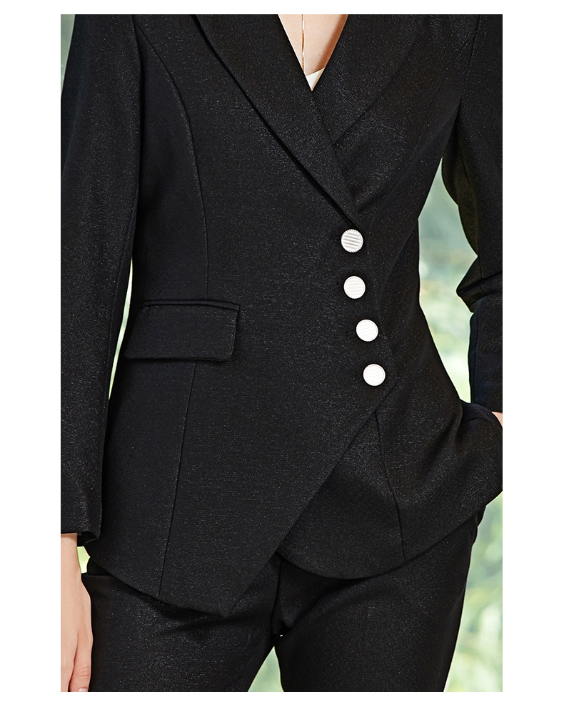 IWY/黑色长袖西装长裤套装C10407-B+P10407-B