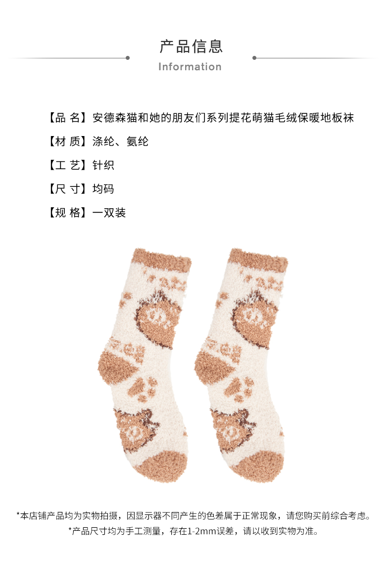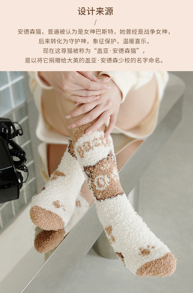 大英博物馆安德森猫和她的朋友们系列提花萌猫毛绒保暖地板袜