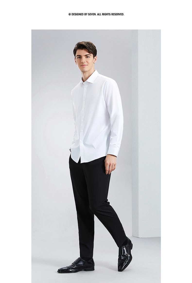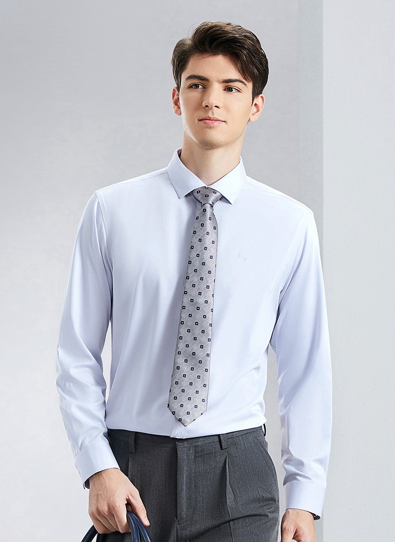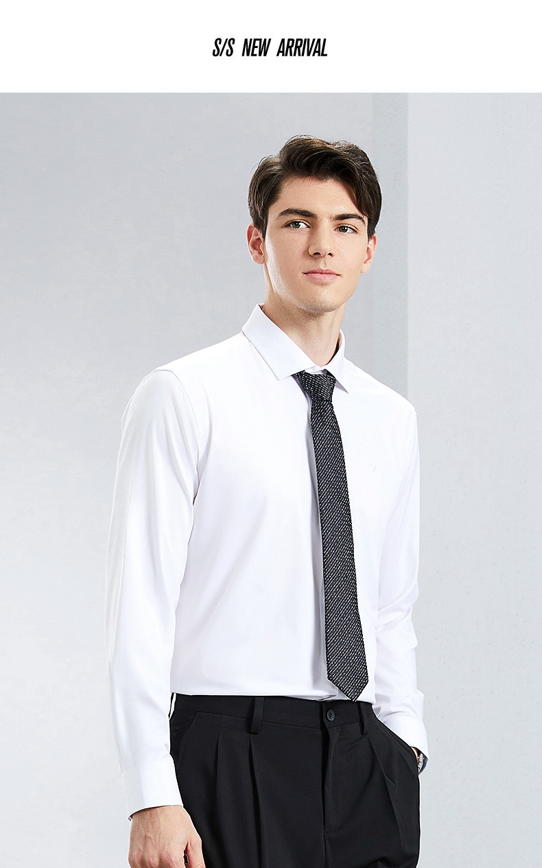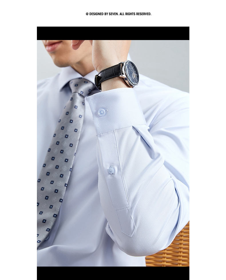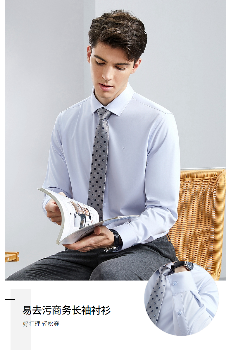 【含竹纤维】柒牌长袖衬衫男2024春季新款商务百搭易去污翻领衬衣 126A70810
