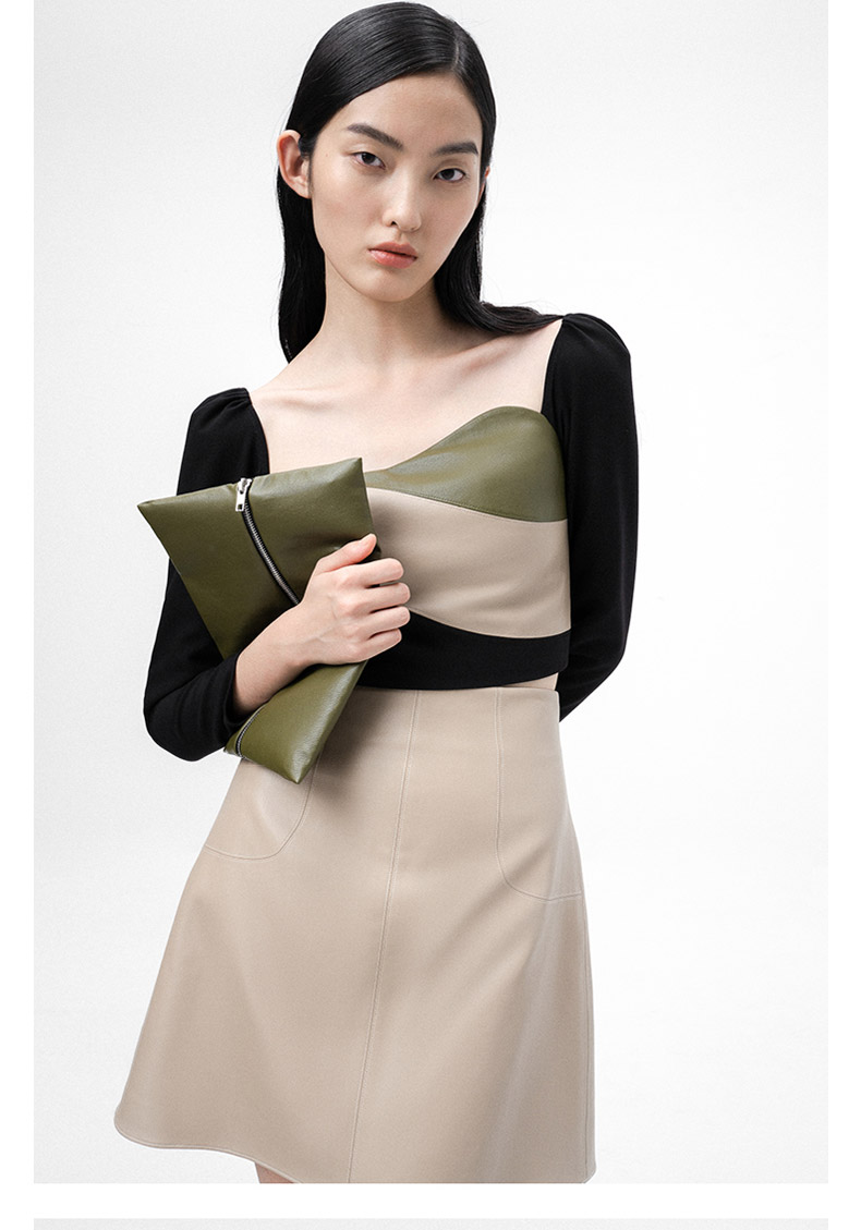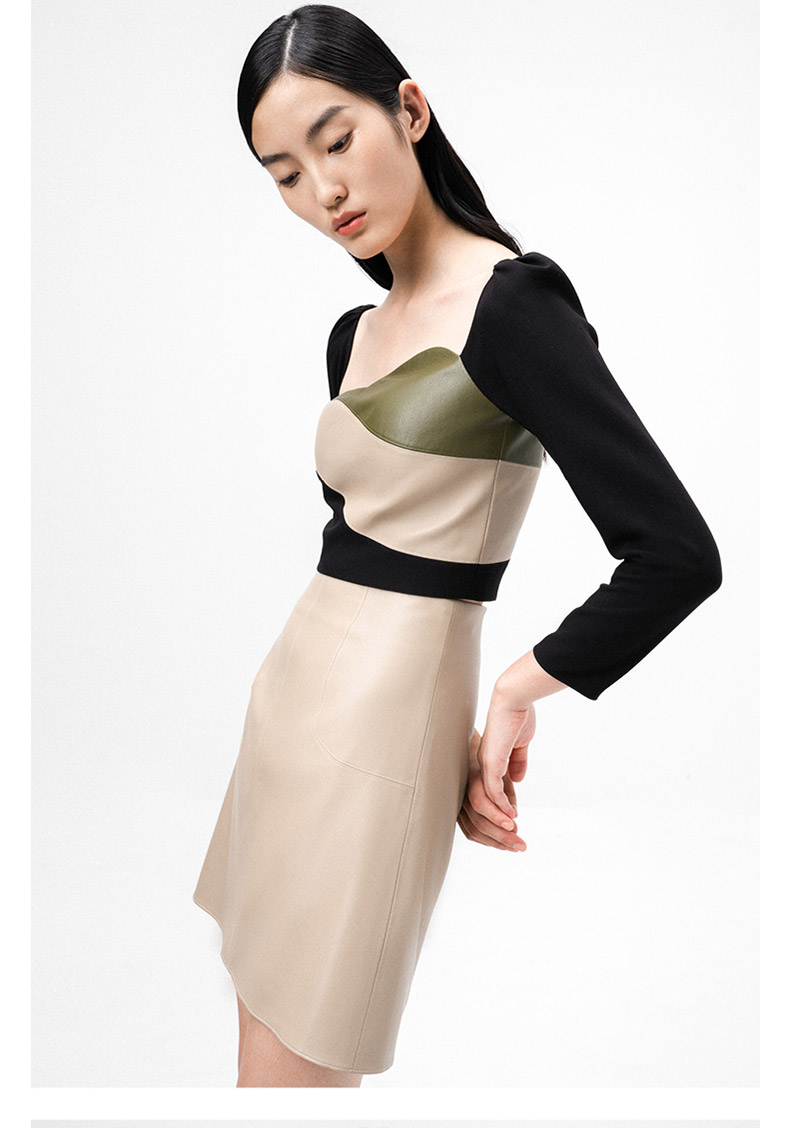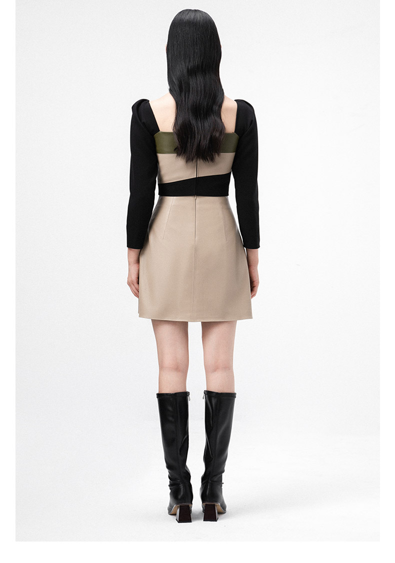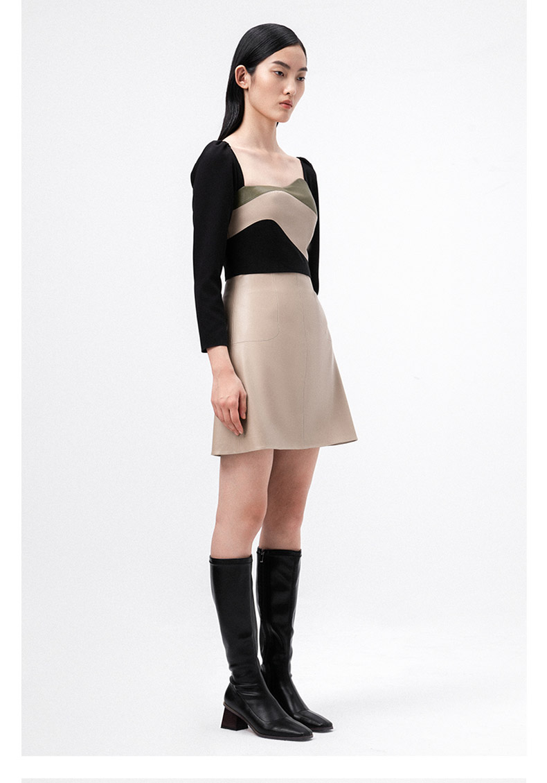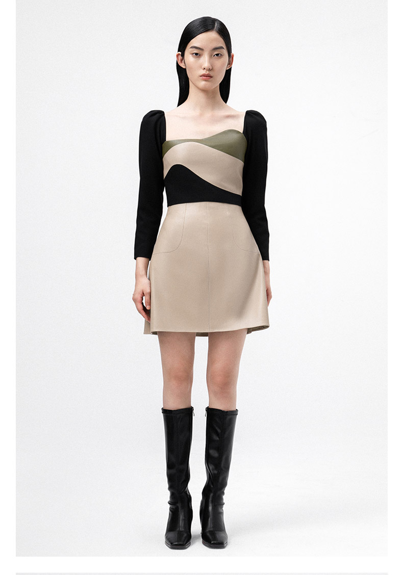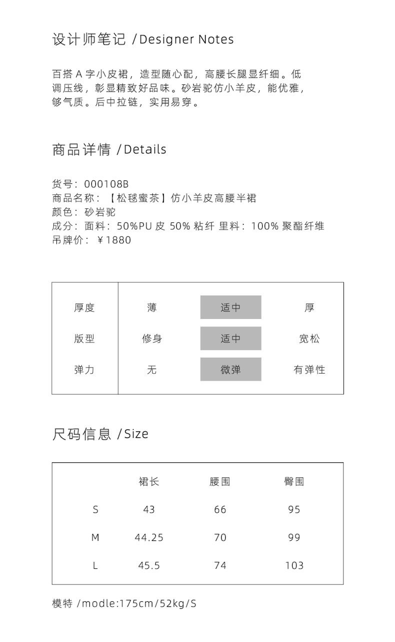 【松毬蜜茶】砂岩驼皮仿小羊皮高腰半裙/000108B