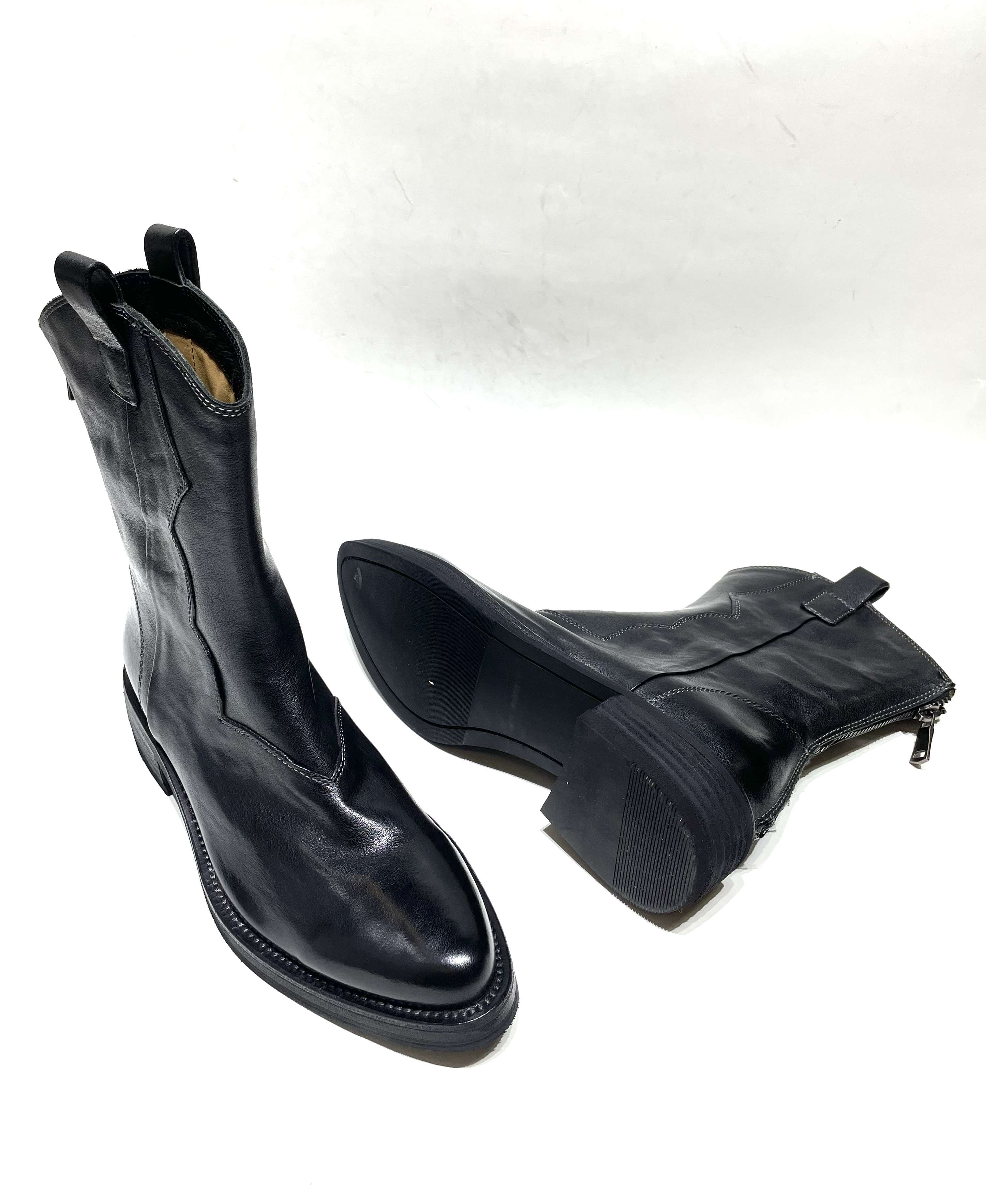 自由旷野.套脚西部靴融合部靴型与现代简约风格,展现随性不羁的都市态度,牛皮革鞋面自带随性皱纹,从细节处凸显高级感,轻松穿出随性自由的