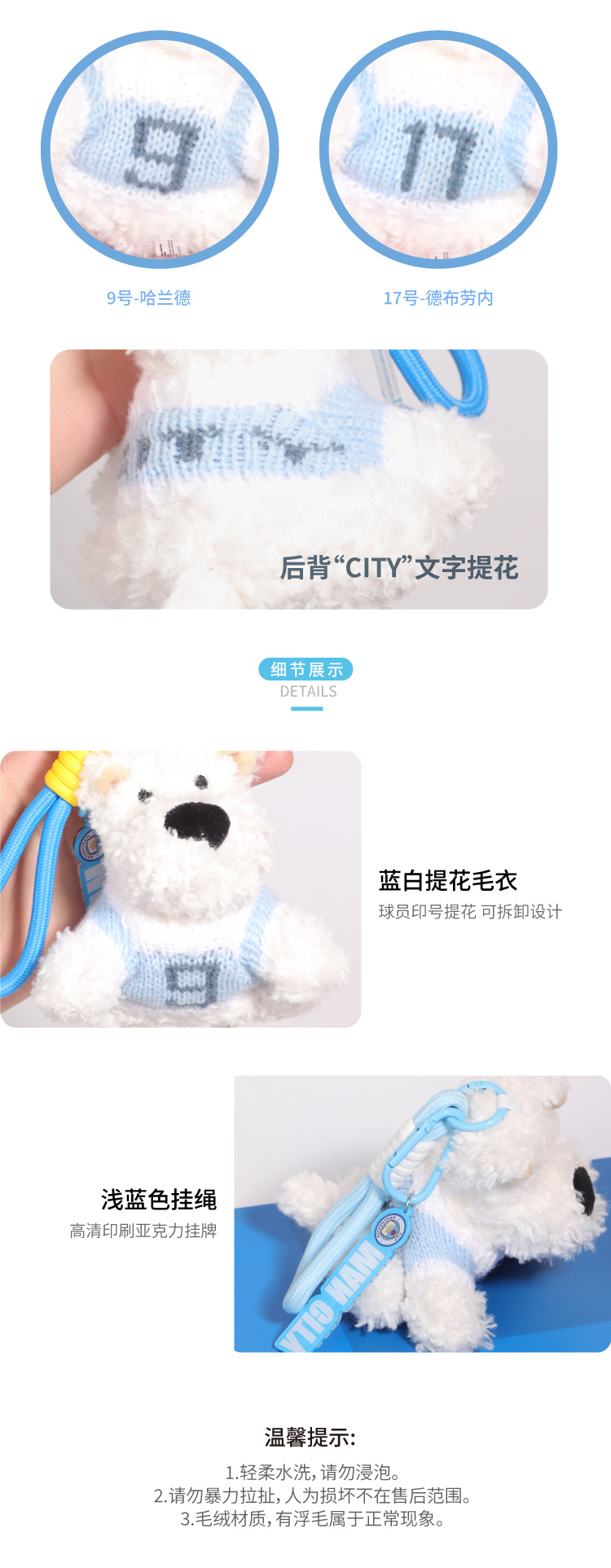 【官方正版】曼城俱乐部 | 球员毛绒小狗挂件可爱周边德布劳内