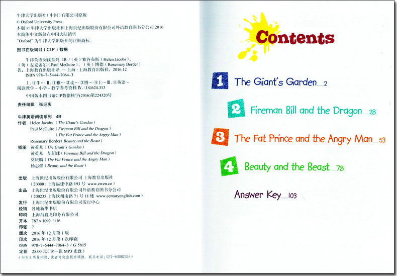 牛津英语阅读 4B 内附MP3光盘一张 4年级/四年级(下)在故事中体验 在阅读中成长 英语阅读教学 上海教育出版社