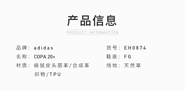 小李子专柜正品ADIDAS/阿迪达斯COPA20+FG袋鼠皮成人足球鞋EH0874