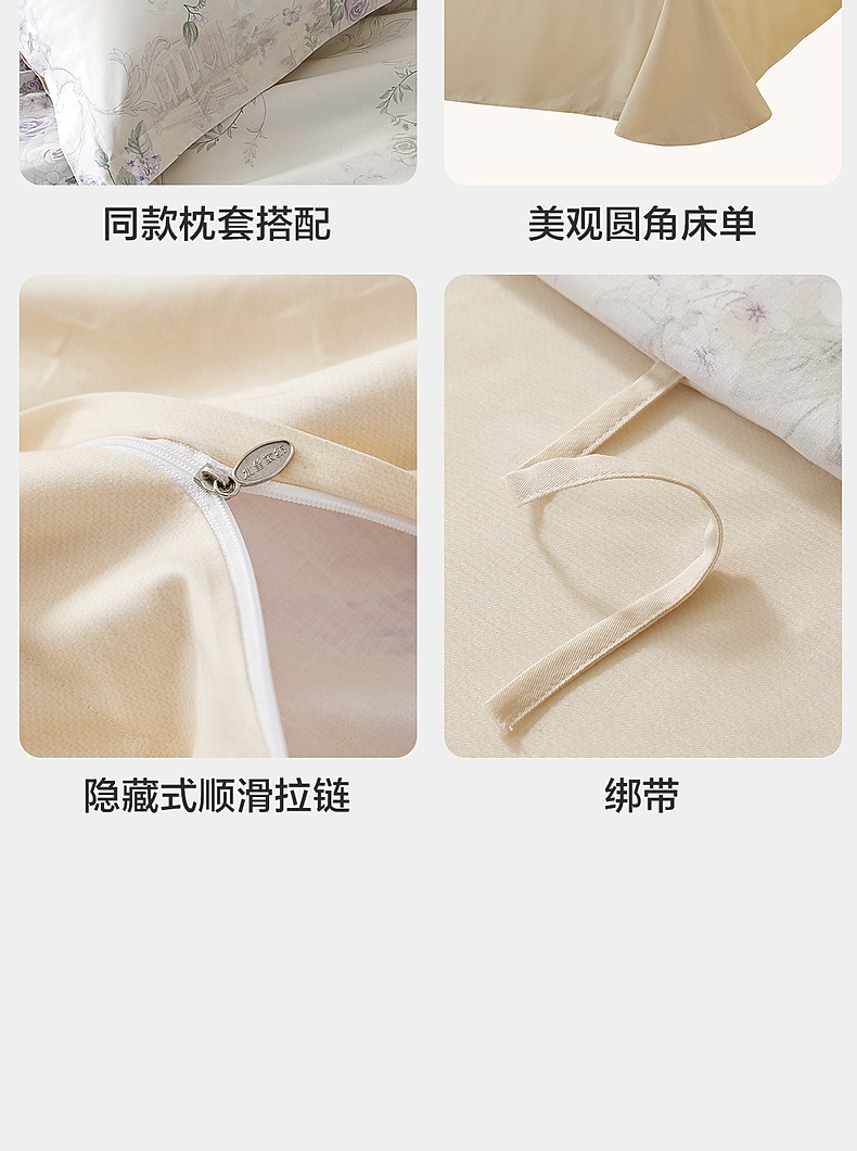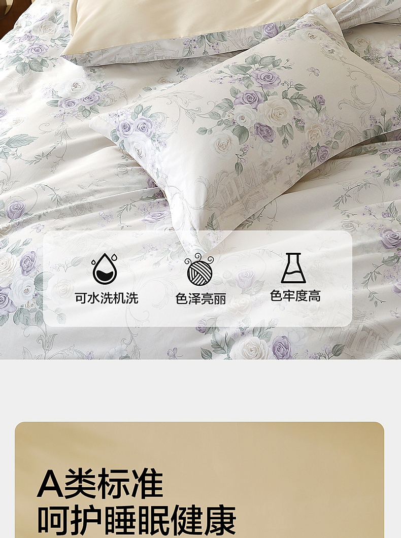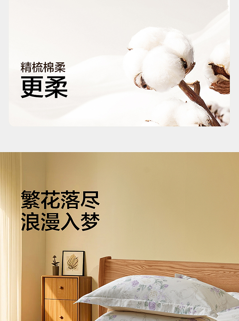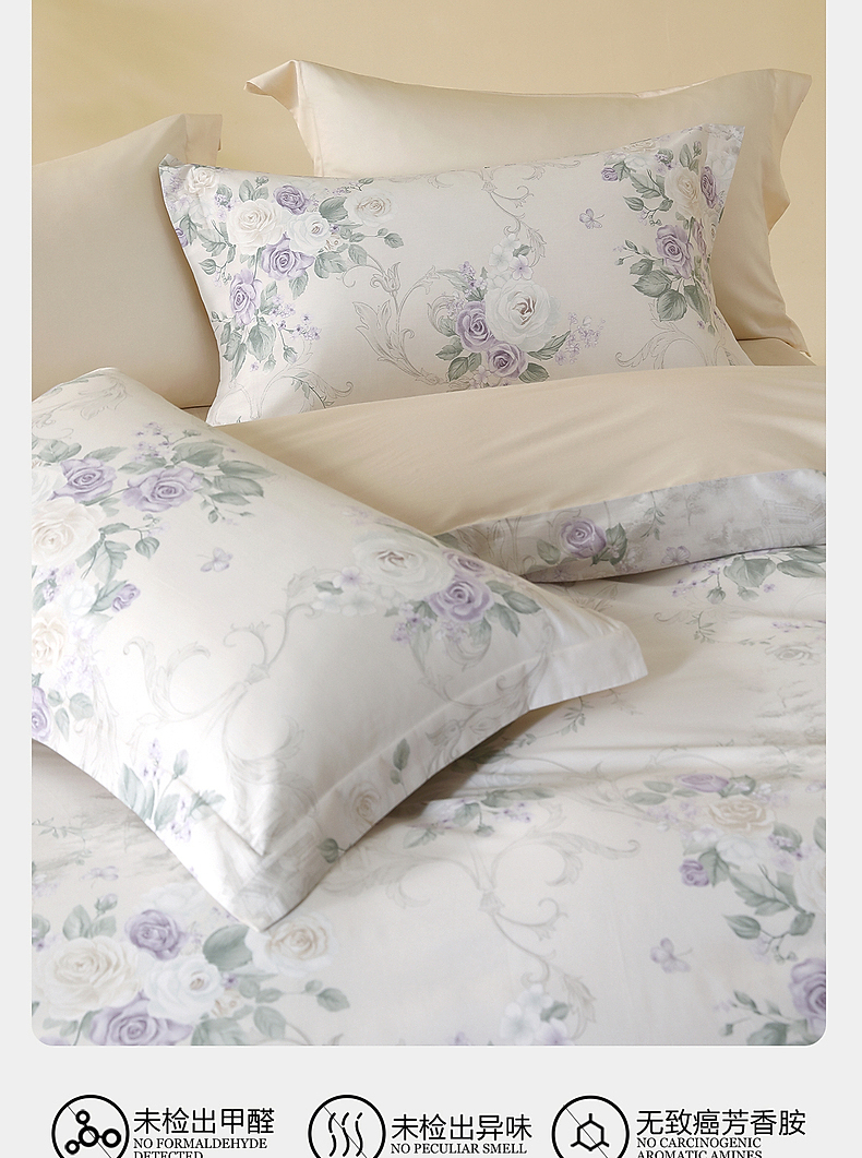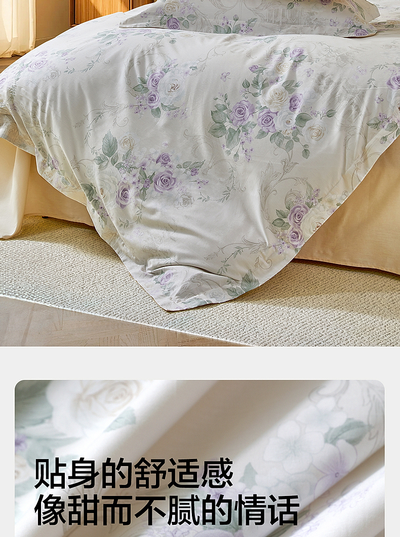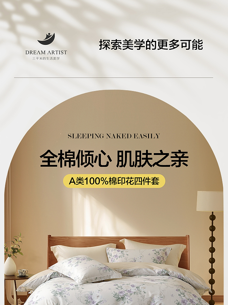 水星家纺全棉四件套简约印花小清新套件亲肤柔软四季床单被套严选