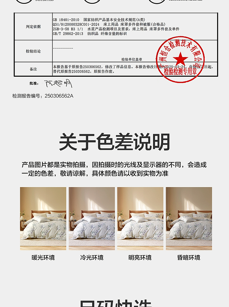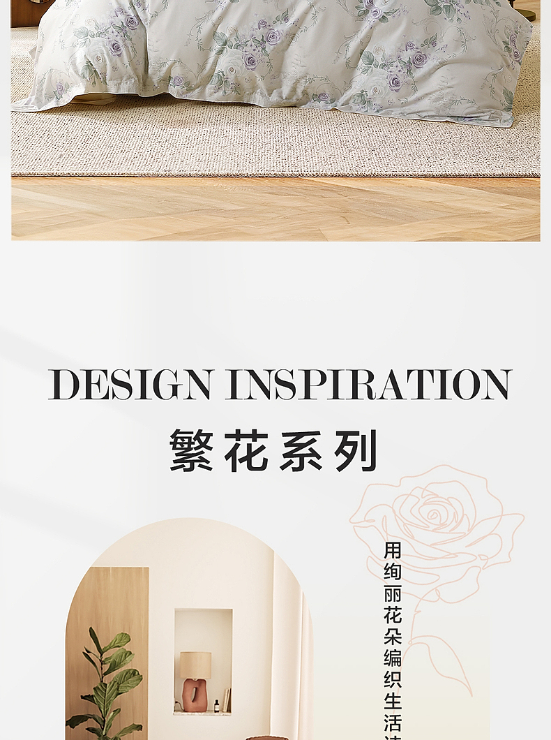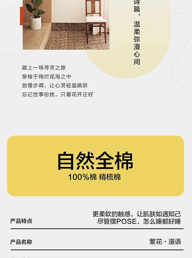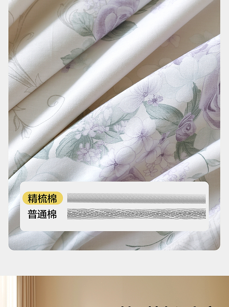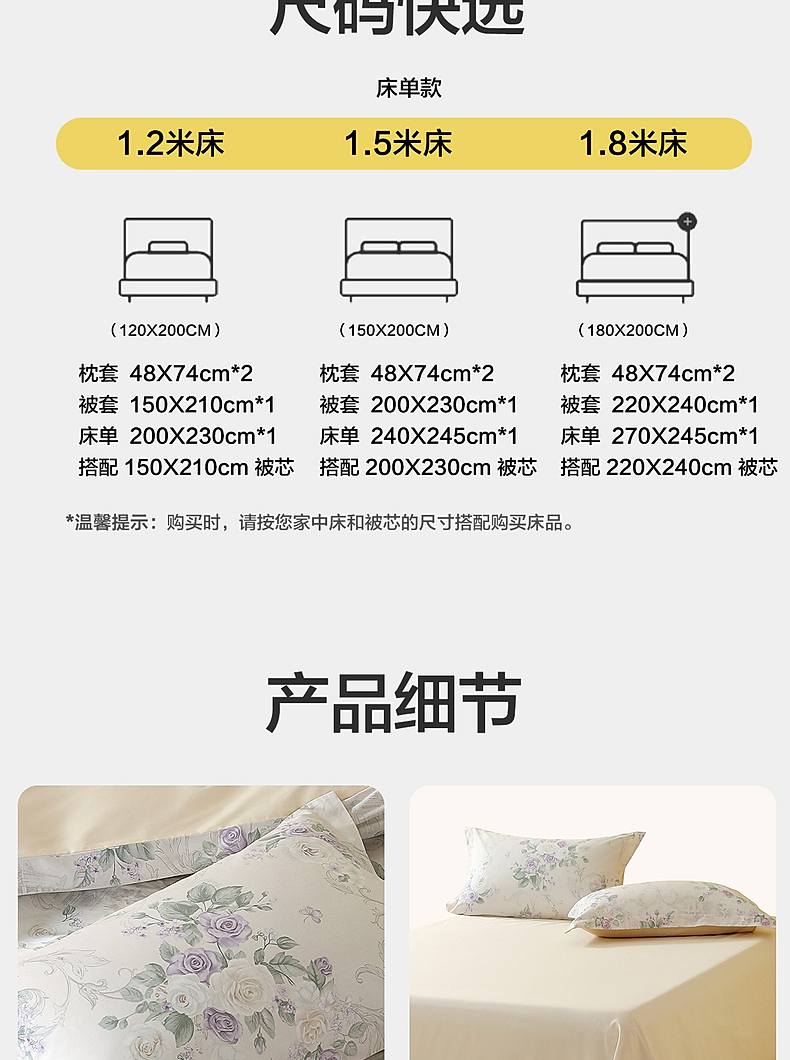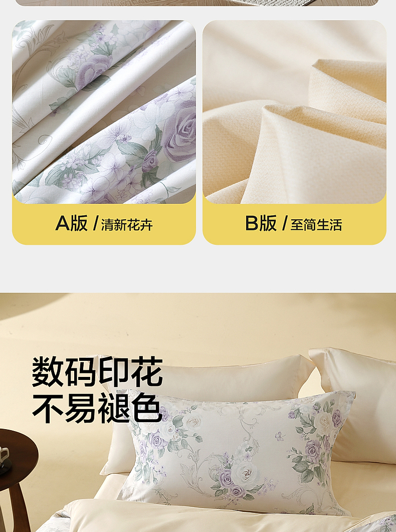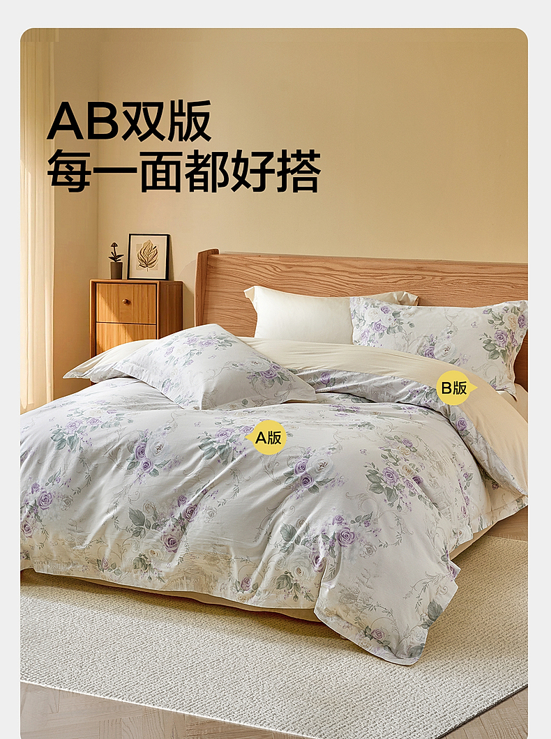 水星家纺全棉四件套简约印花小清新套件亲肤柔软四季床单被套严选