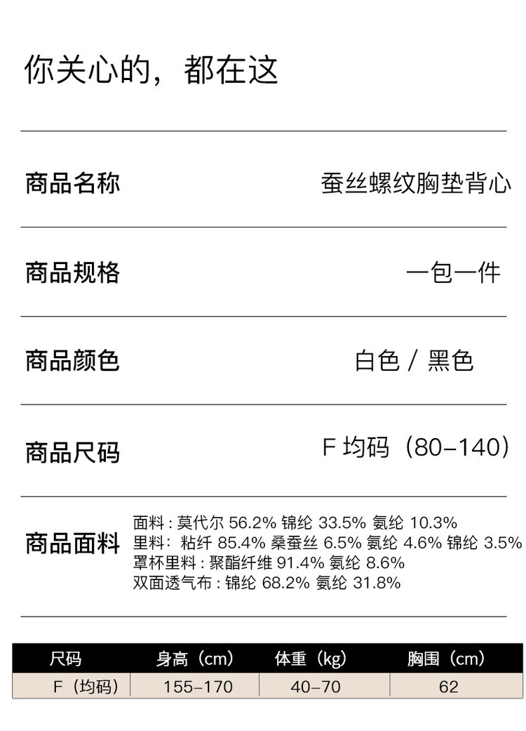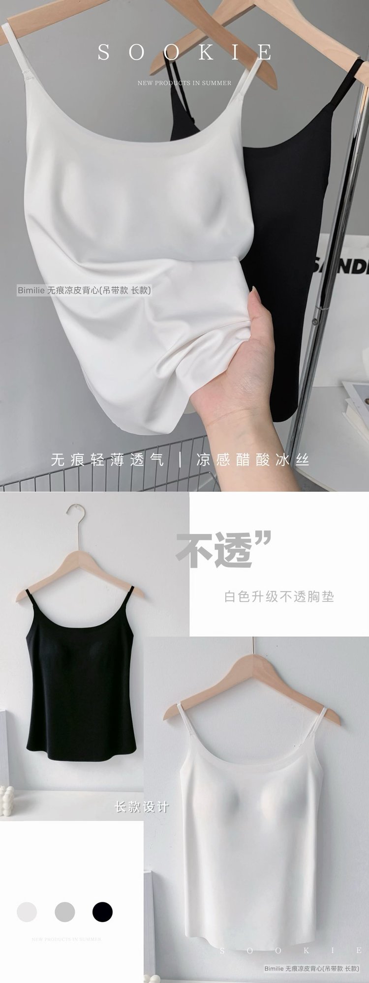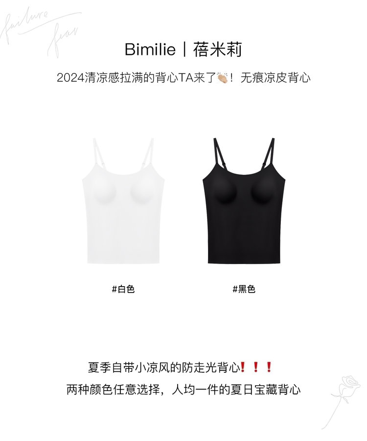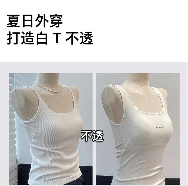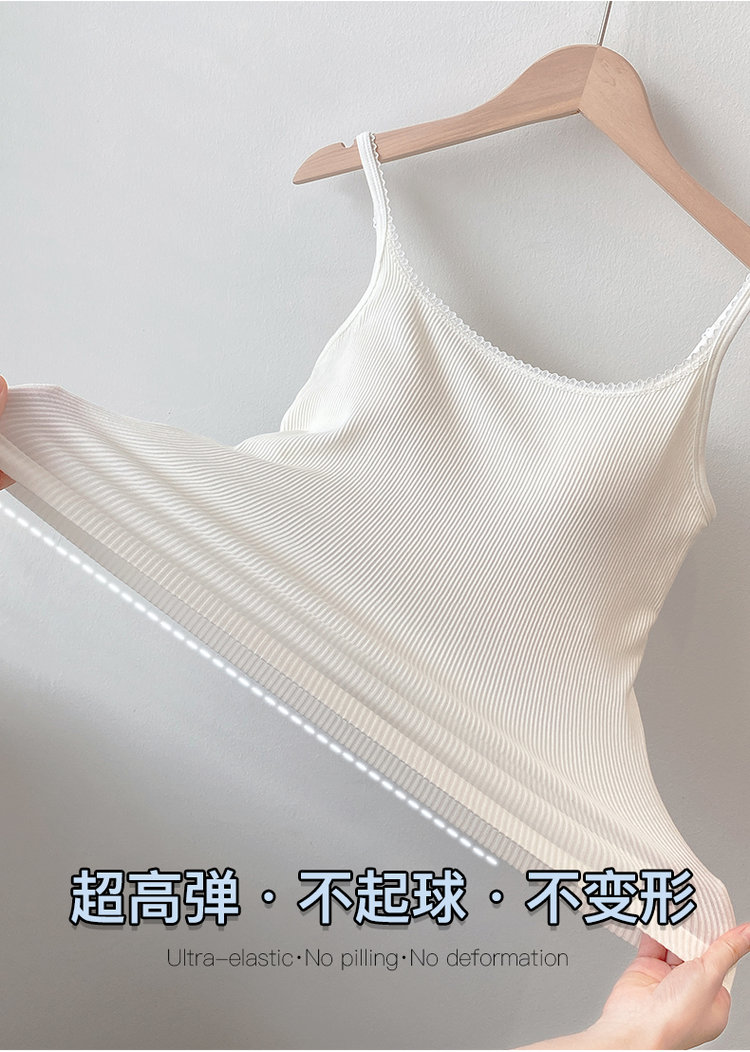 2.26之后发!新增裸氨羊毛蚕丝发热背心~【Bimilie 蚕丝螺纹胸垫背心】 夏日外穿,打造白色不透吊带 白色完全不用担心 透杯问题 细腻的织法+胸垫一体式 有效避免了尴尬 ,内搭单穿都毫无压力