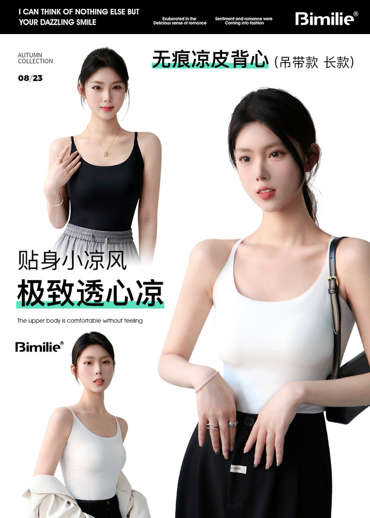 【品名】Bimilie 蚕丝螺纹胸垫背心/Bimilie 无痕凉皮背心/裸氨羊毛蚕丝发热背心(宽肩带)(细肩带)
