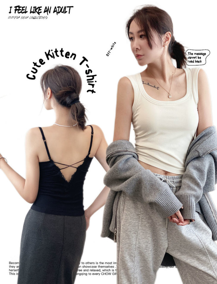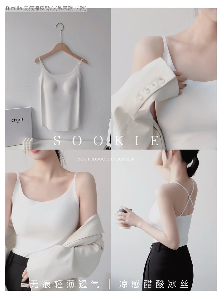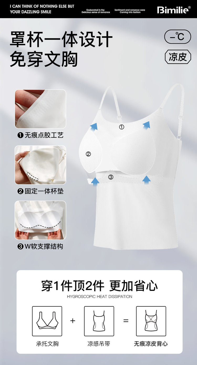 ▪︎ 杯罩一体设计的无痕裸感吊带背心 全方位享受专属温柔怀抱
