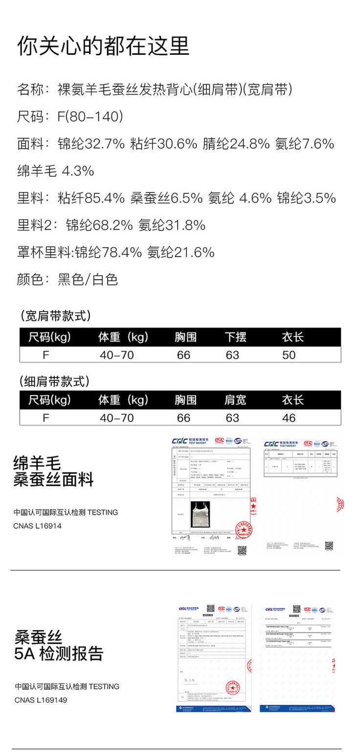 裸氨羊毛蚕丝发热背心尺码表参考>>
