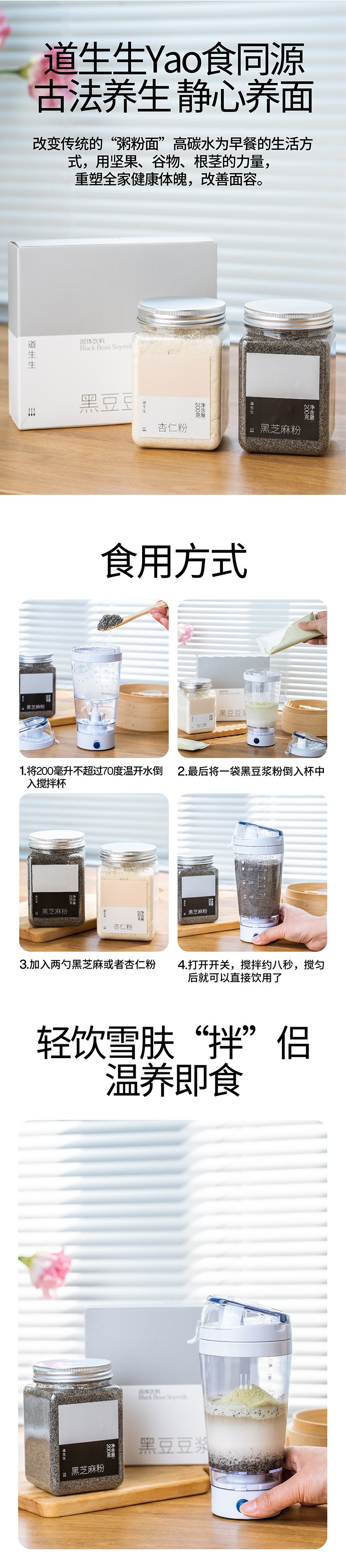 道生生 养生早餐无添加无糖纯粉杏仁黑芝麻黑豆浆即溶冲泡早餐