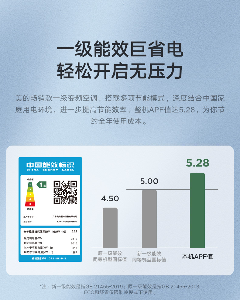 美的空调 1.5匹 酷静一级能效 变频挂机 远程智控 大风口 冷暖两用 抽湿 高温自清洁KFR-35GW/N8ZHD1