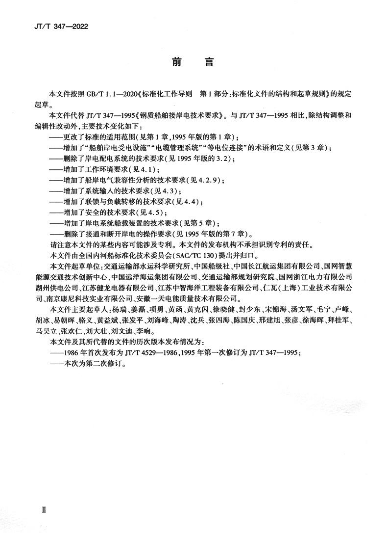 书名:钢质船舶岸电受电设施技术要求(JT/T 347-2022)