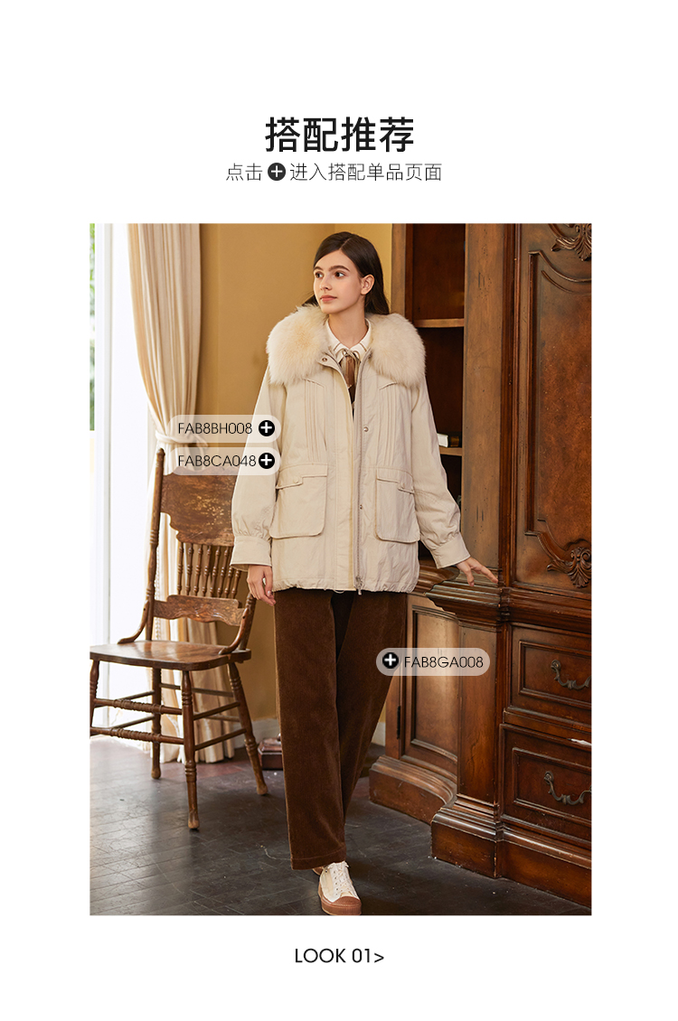 Famecoco范可儿冬季工装羽绒服女款带毛领FAB8AJ007