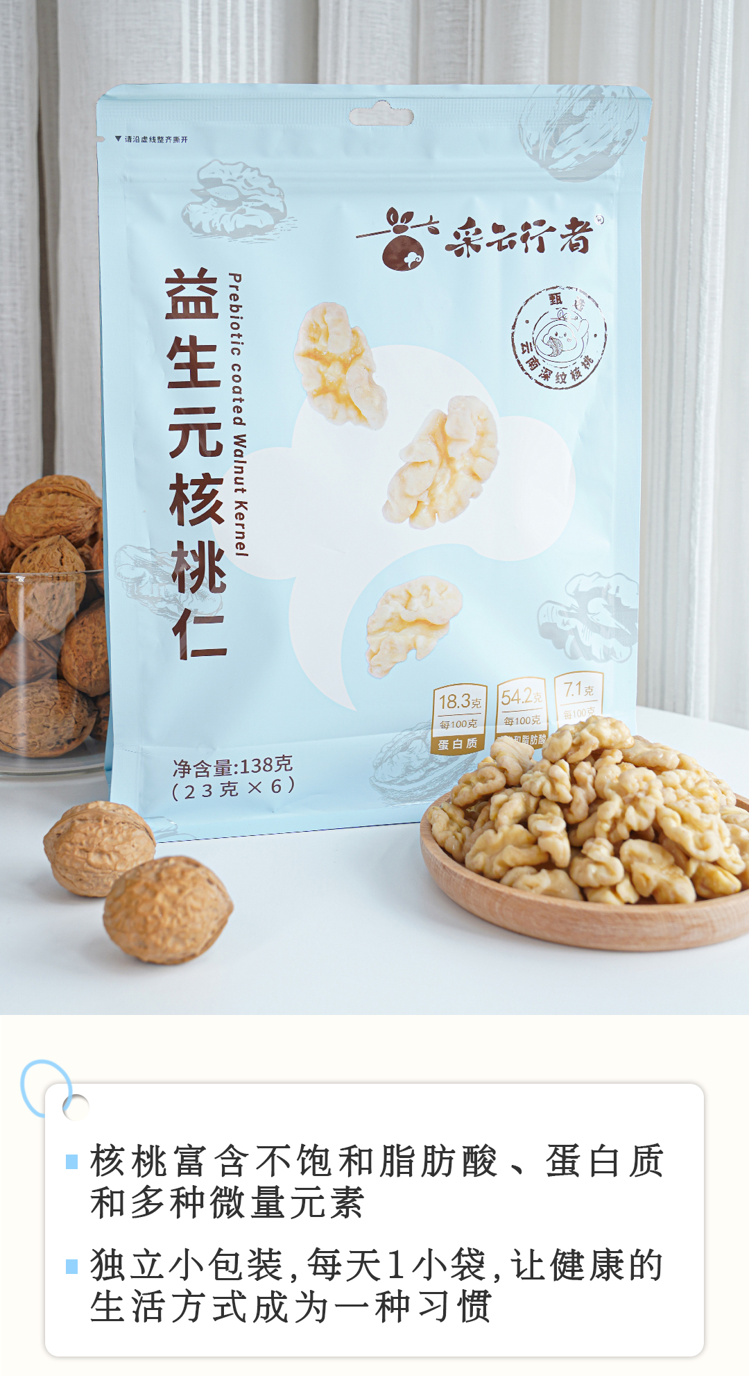 采云行者益生元核桃仁 去核桃衣添加益生元 微甜酥脆 营养坚果