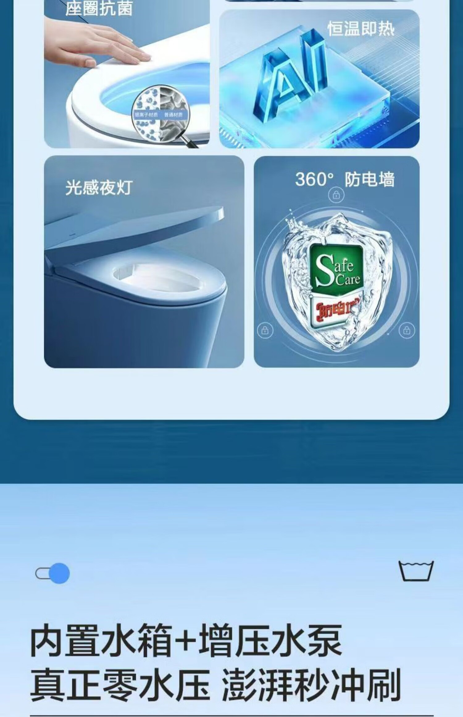 海尔智能马桶HF自动翻盖零水压隐藏式水箱等离子双水路一体式