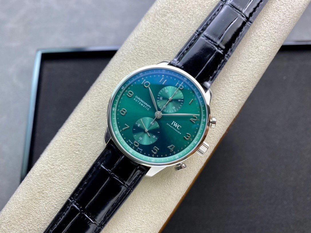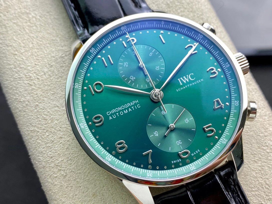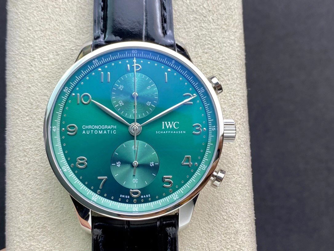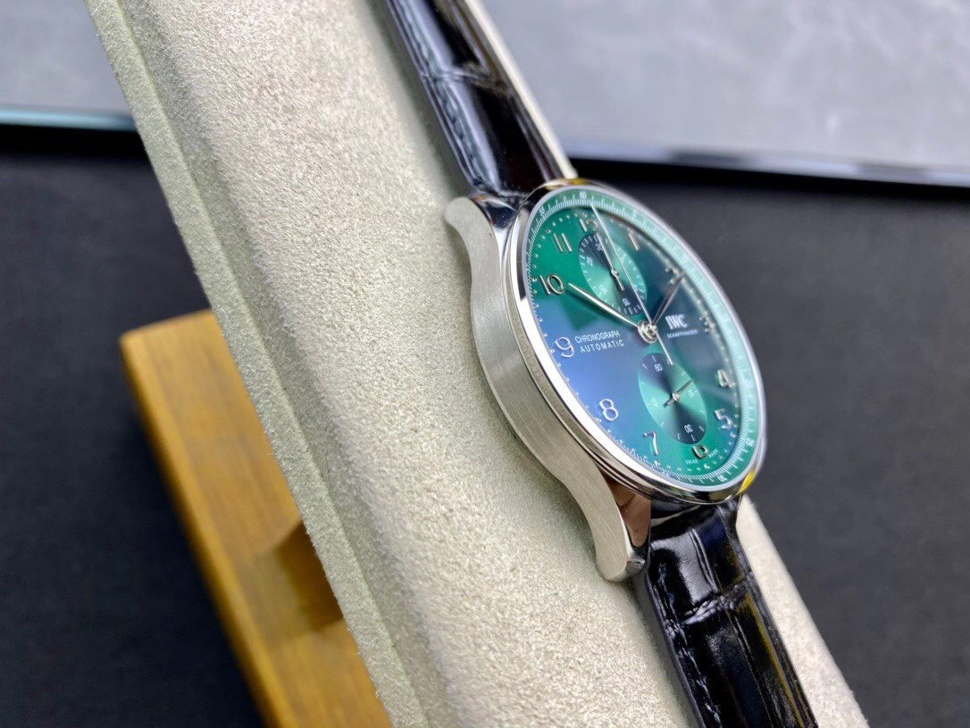 ZF力作 “绿海王”[得意]万国IWC 150周年版本全新万国葡萄牙上市:时分秒针高度与正品一致,紧贴表盘,只有唯一一家能够做到;表盘字钉圆润光滑,刻度点才有CNC雕刻工艺。