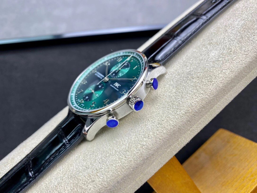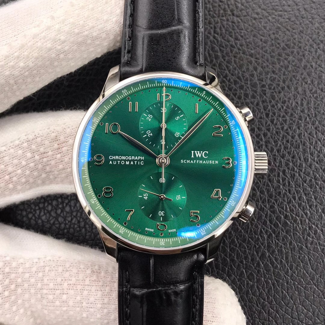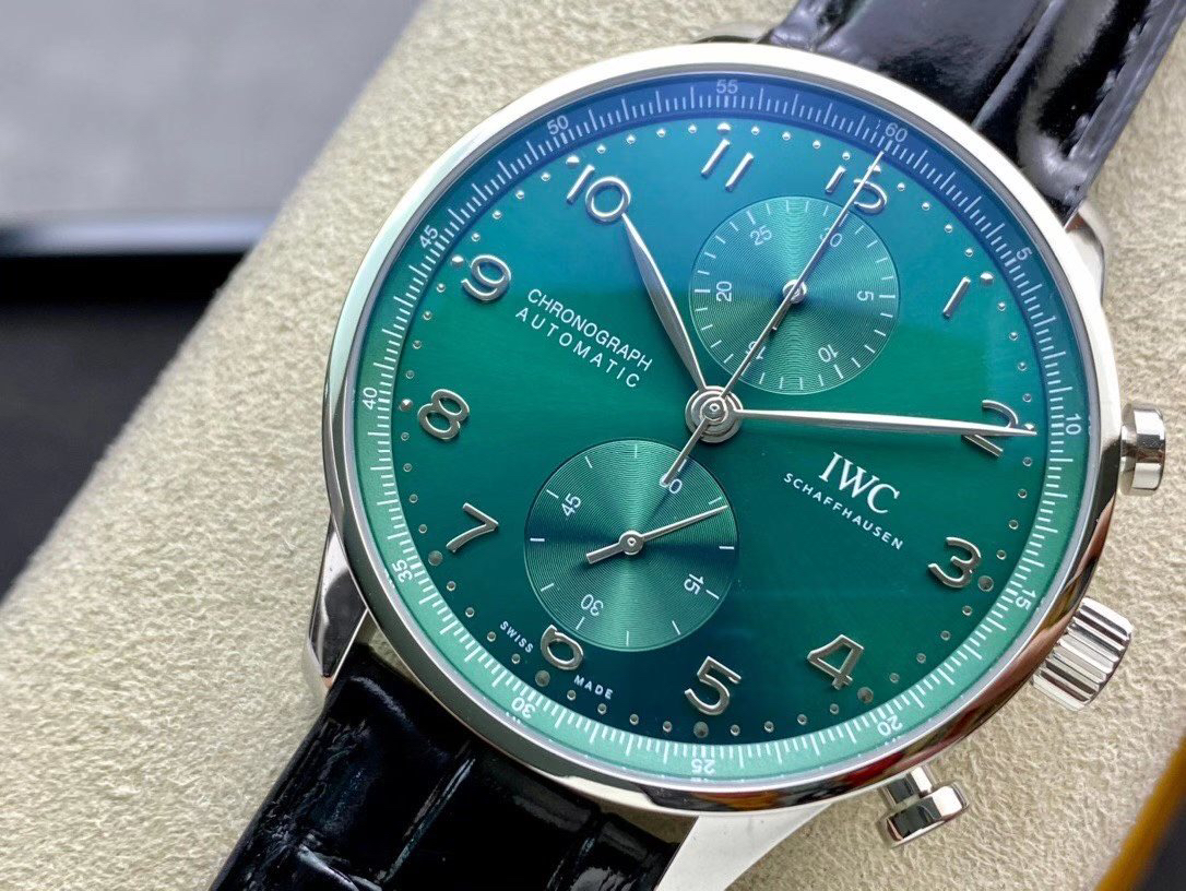 ZF力作 “绿海王”[得意]万国IWC 150周年版本全新万国葡萄牙上市:时分秒针高度与正品一致,紧贴表盘,只有唯一一家能够做到;表盘字钉圆润光滑,刻度点才有CNC雕刻工艺。