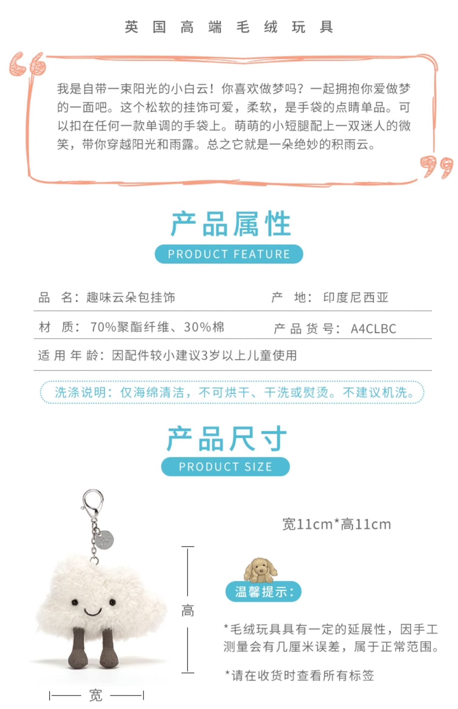 Jellycat 趣味云朵包挂饰