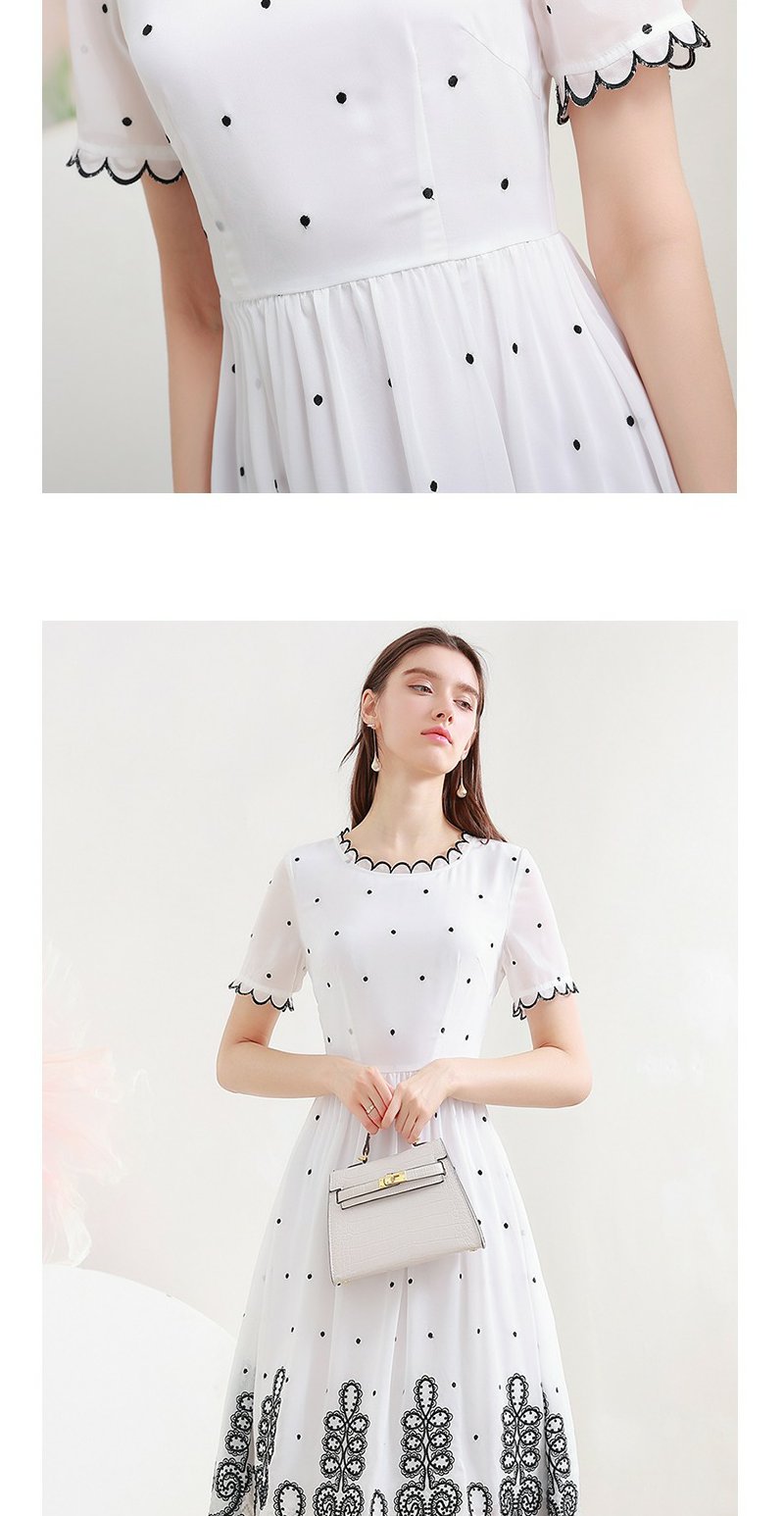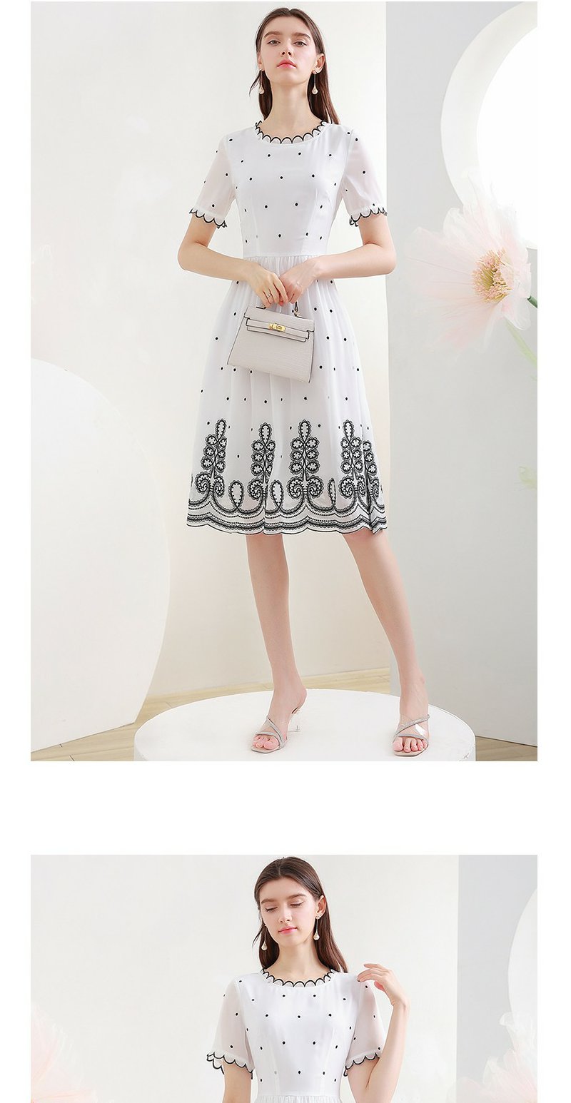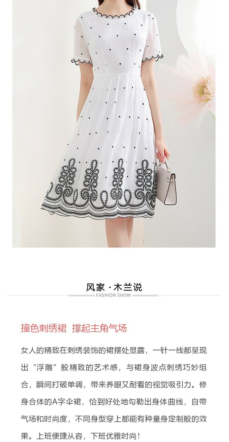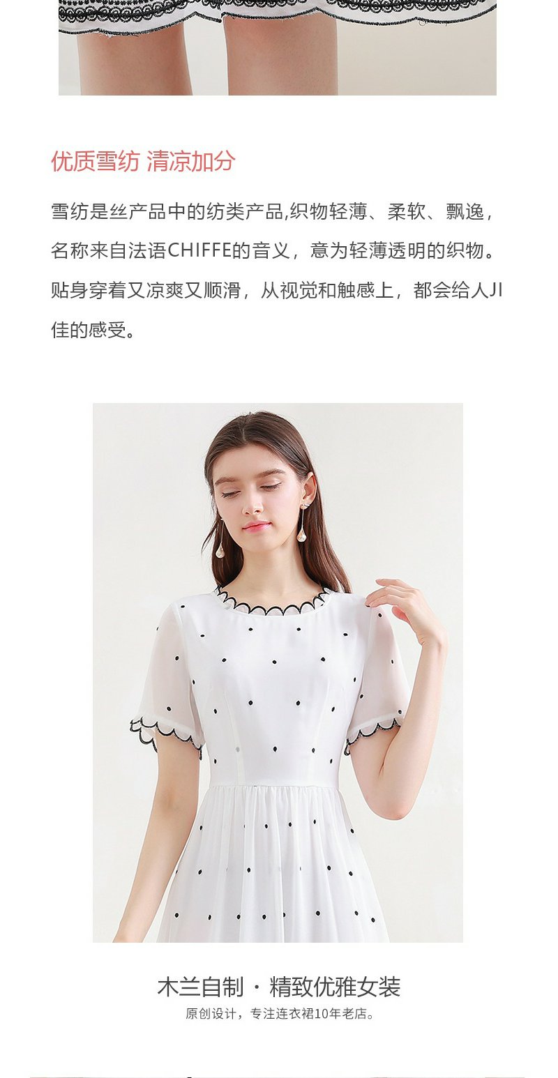 未风白色波点雪纺连衣裙女夏2025年夏季新款修身优雅气质短袖裙子