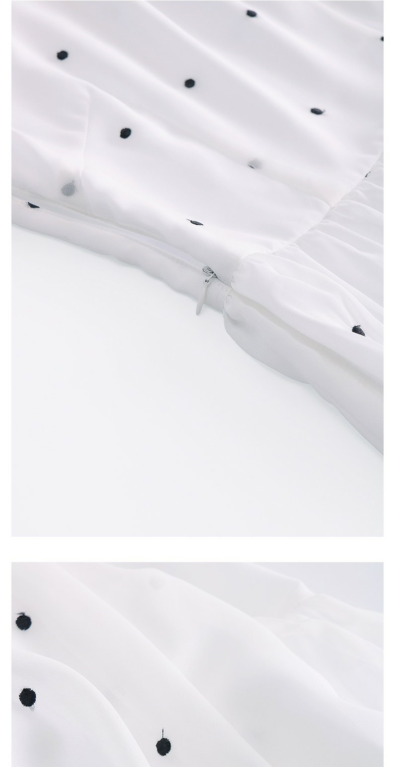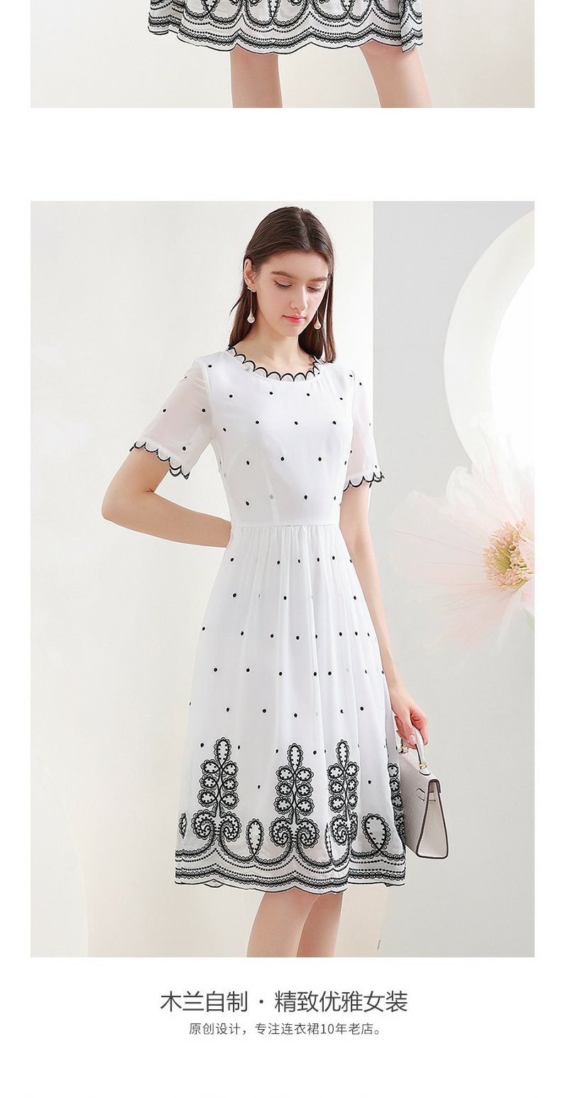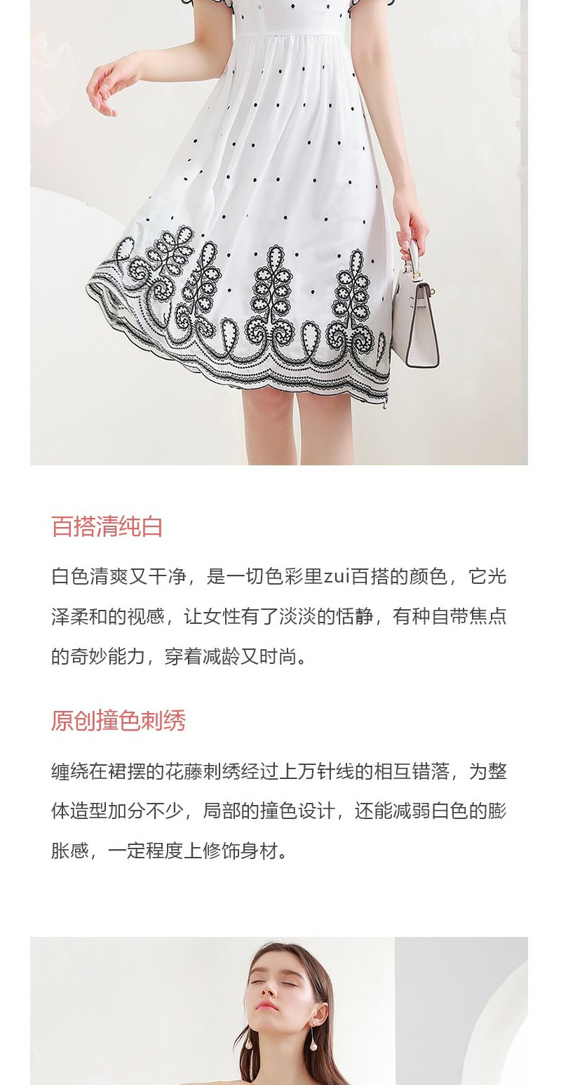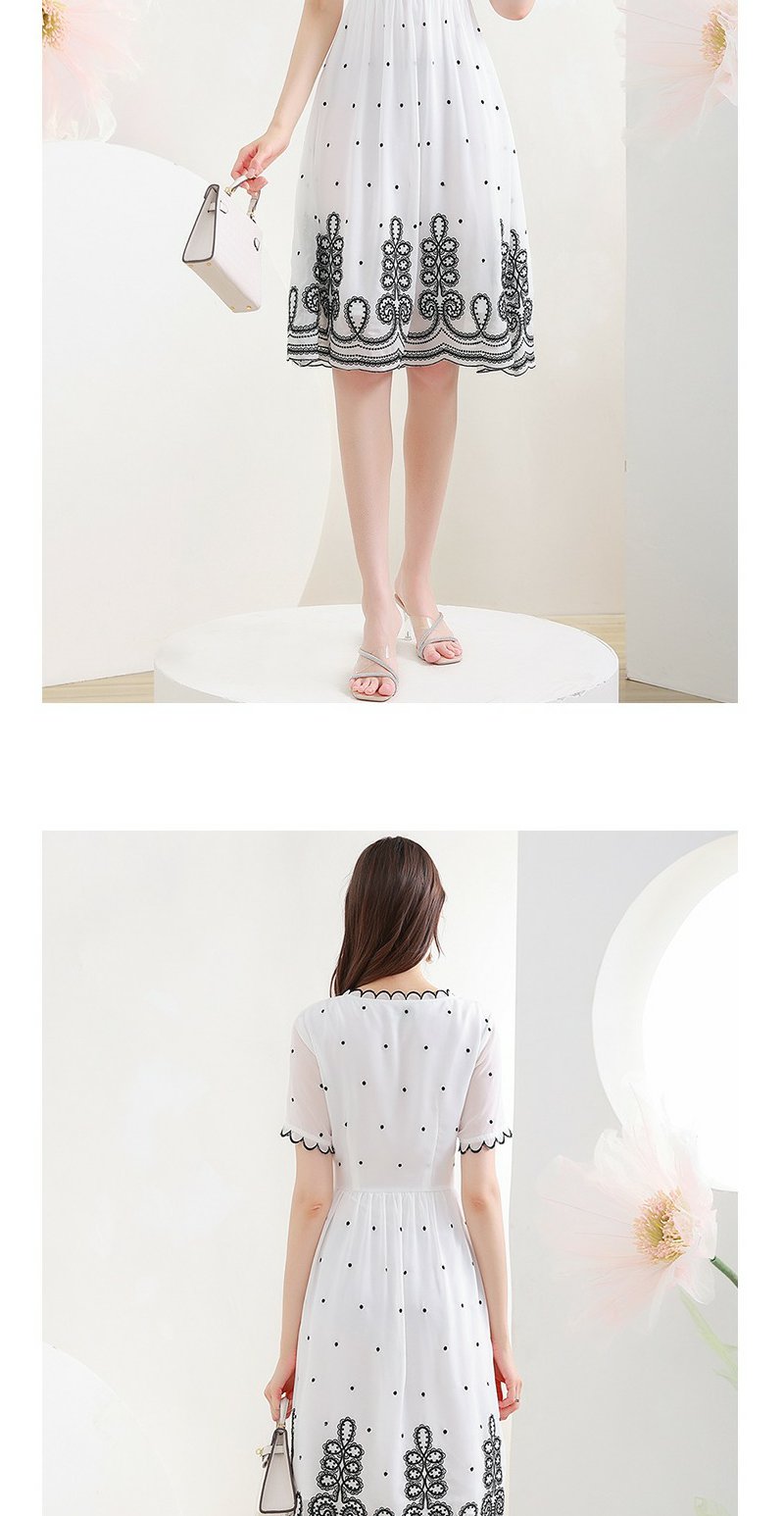 未风白色波点雪纺连衣裙女夏2025年夏季新款修身优雅气质短袖裙子