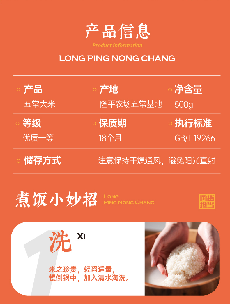 隆平芯米(五常大米) 500g/2.5kg/5kg 五常稻花香2号 核心龙凤山产区