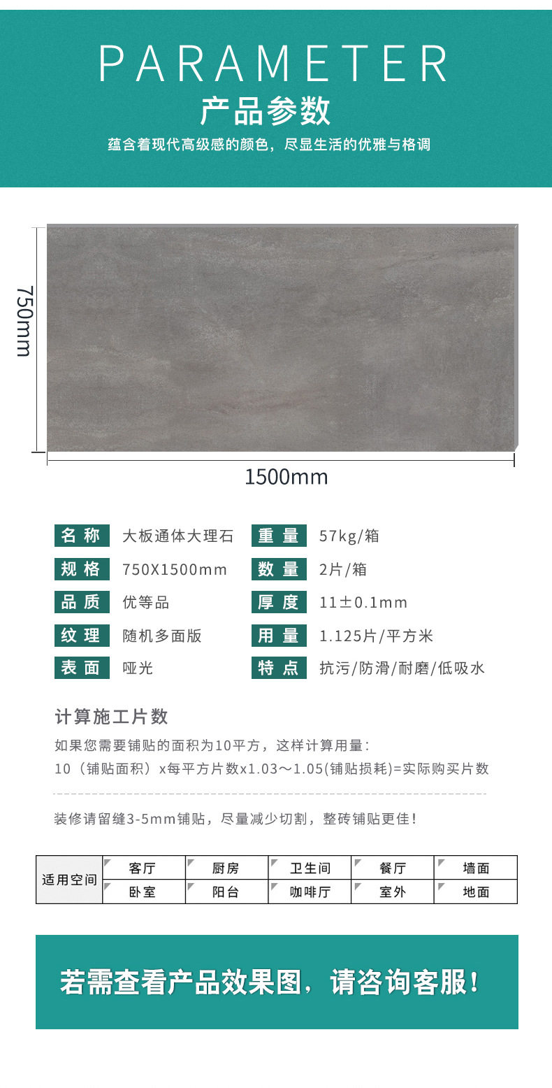 通体瓷砖水泥工程素色 厨房大板批发哑光工厂750x1500客微地砖