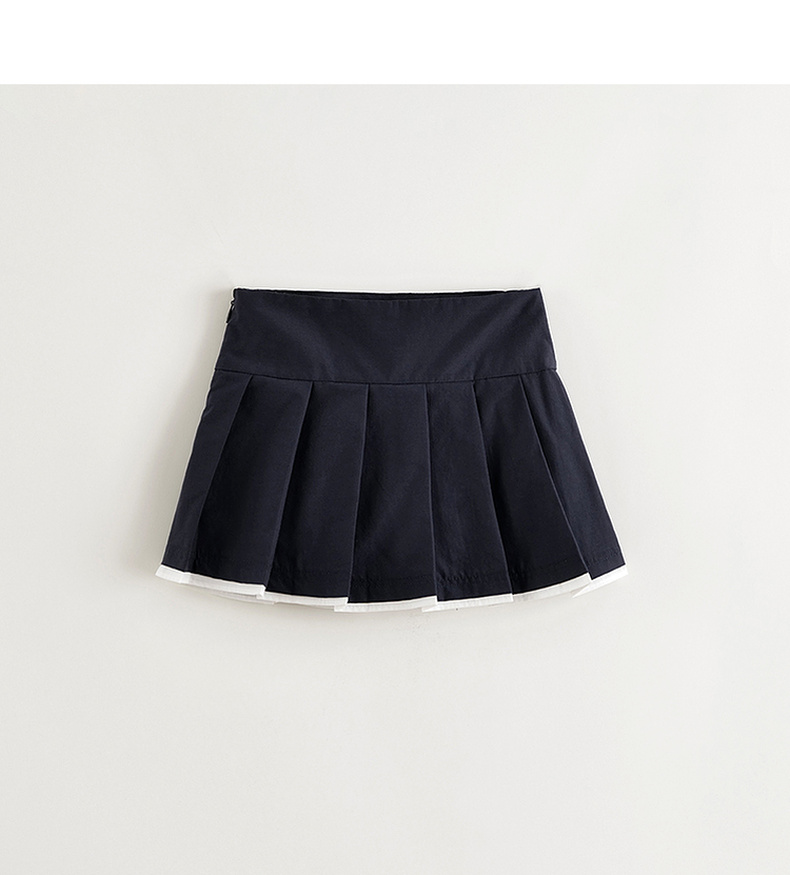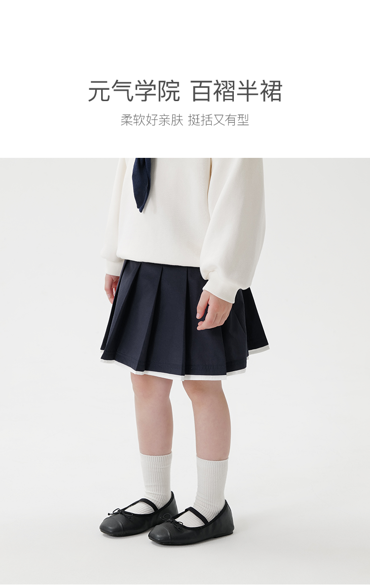 马克珍妮女童元气学院撞色百褶半裙 儿童短裙2025年春装新250225