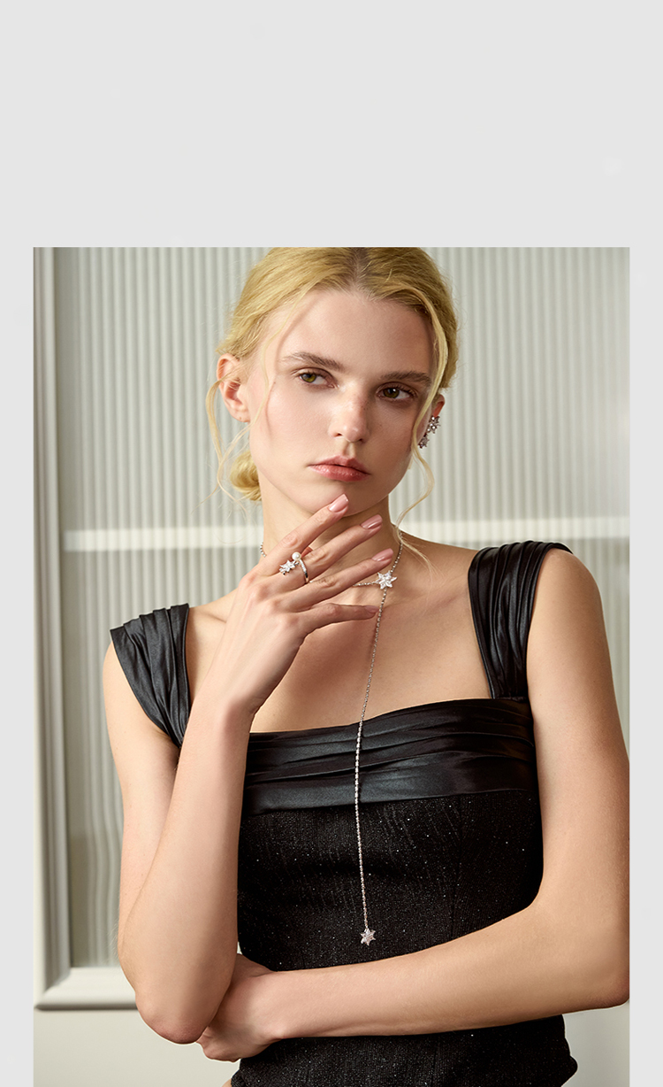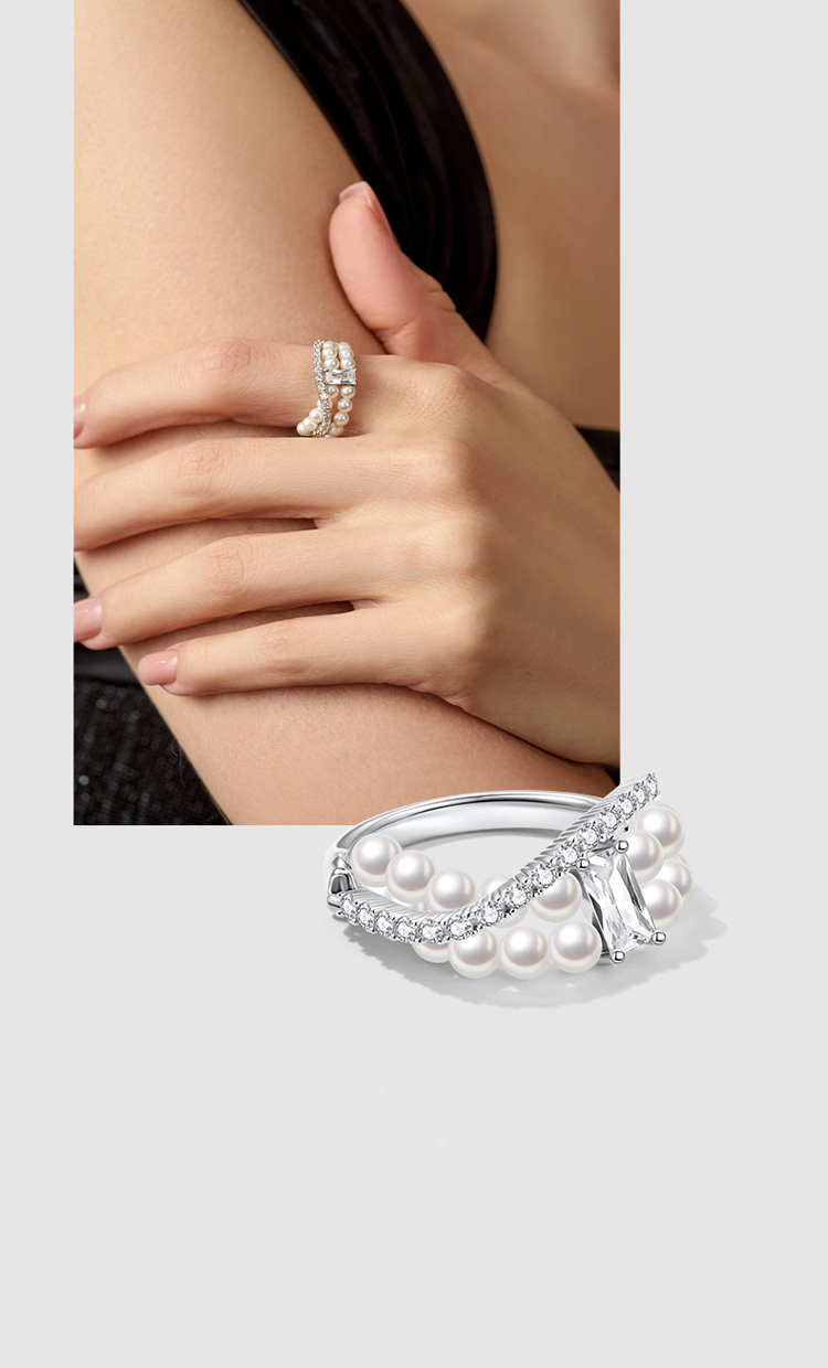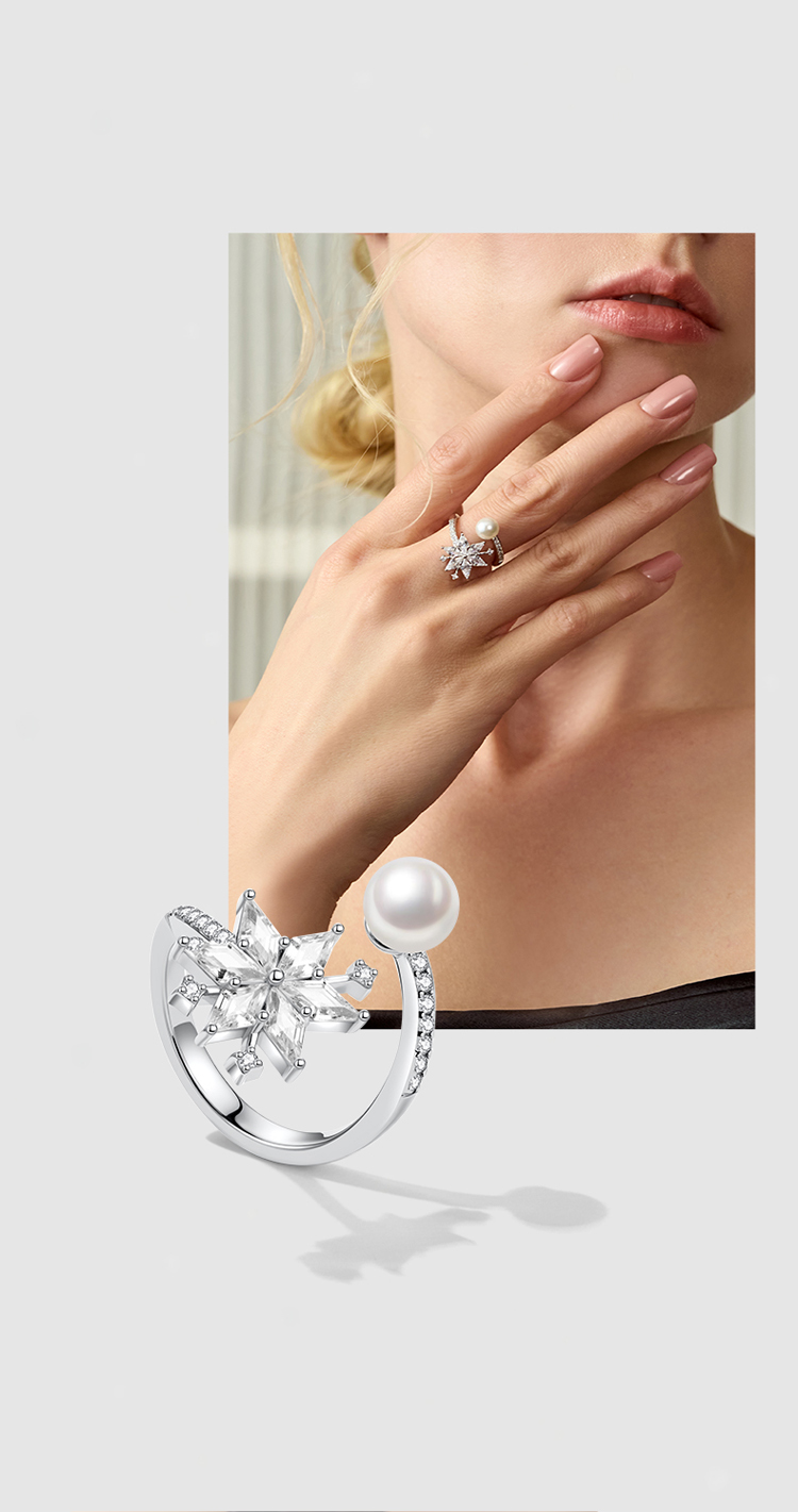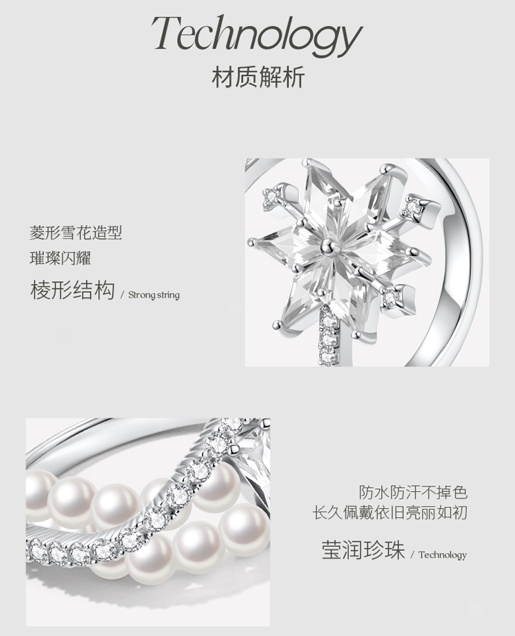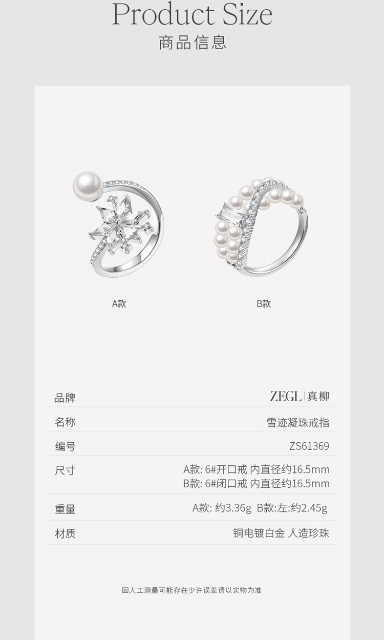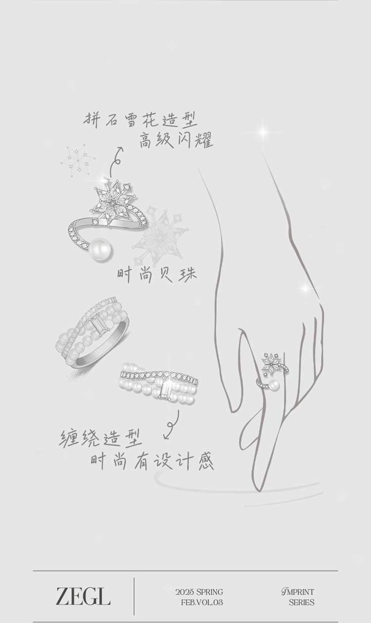 ZEGL冰凌系列珍珠戒指雪花开口戒女小众设计指环轻奢新年秋冬尾戒