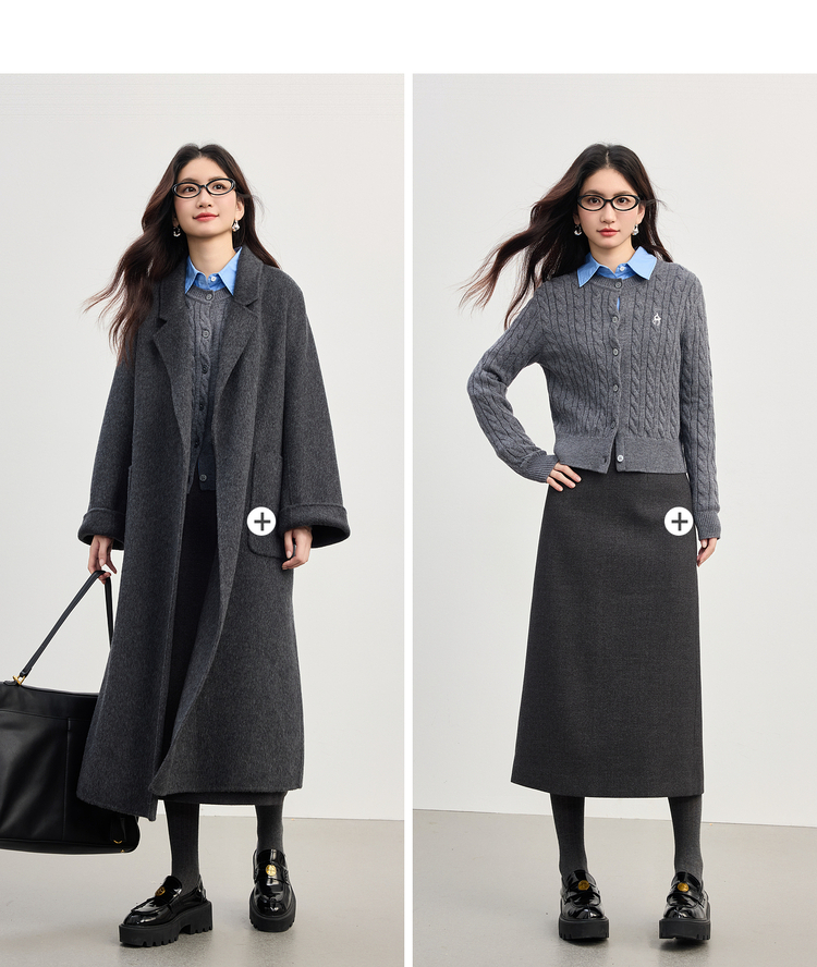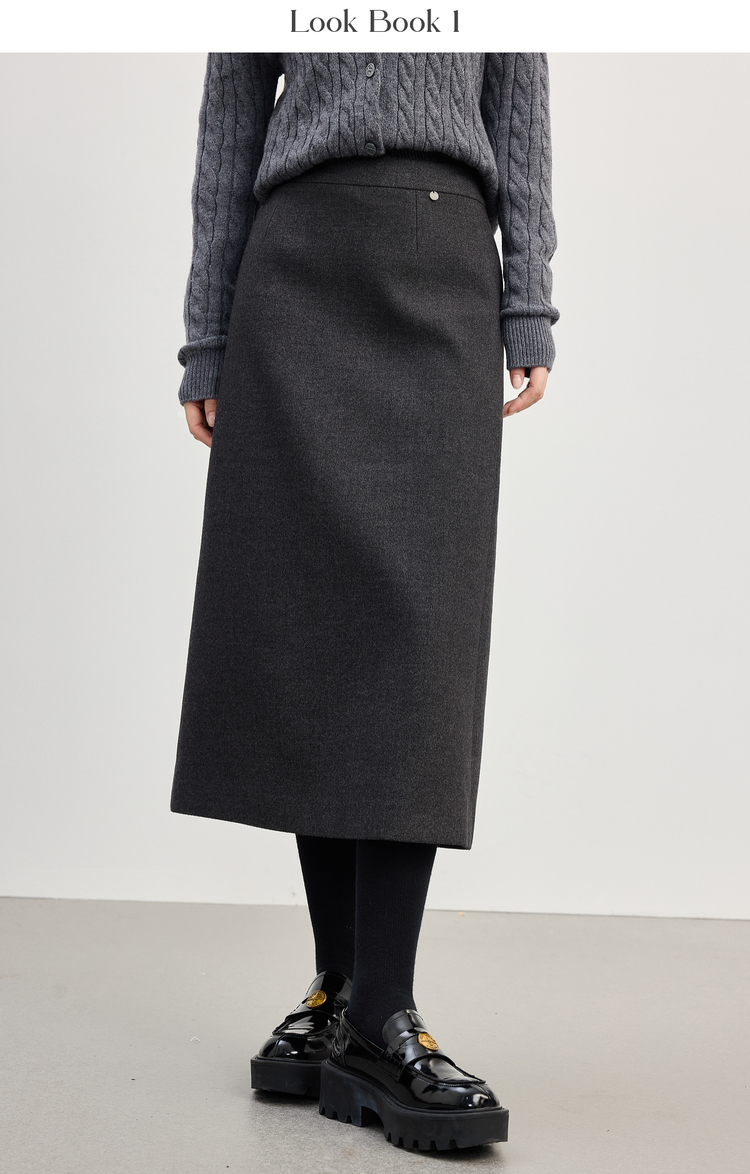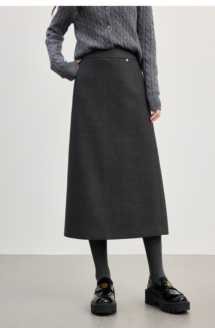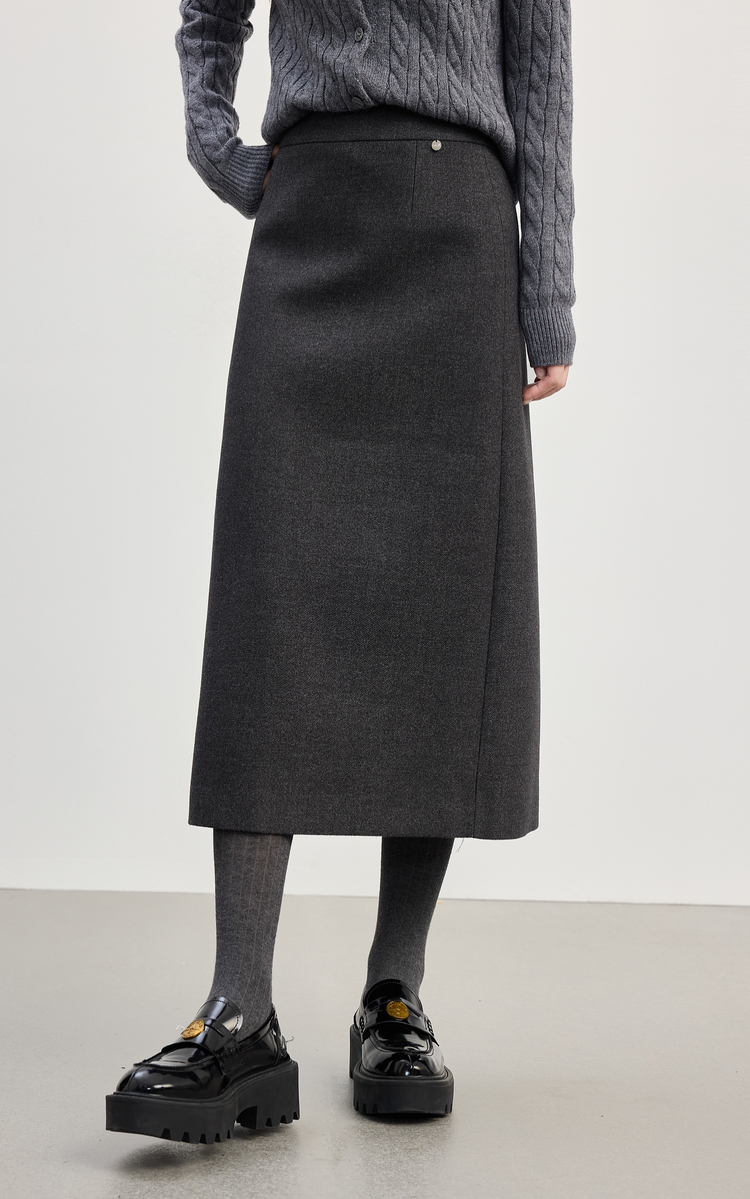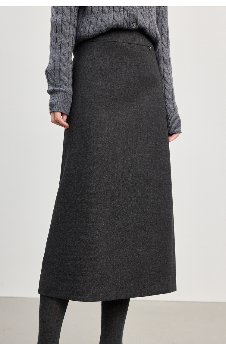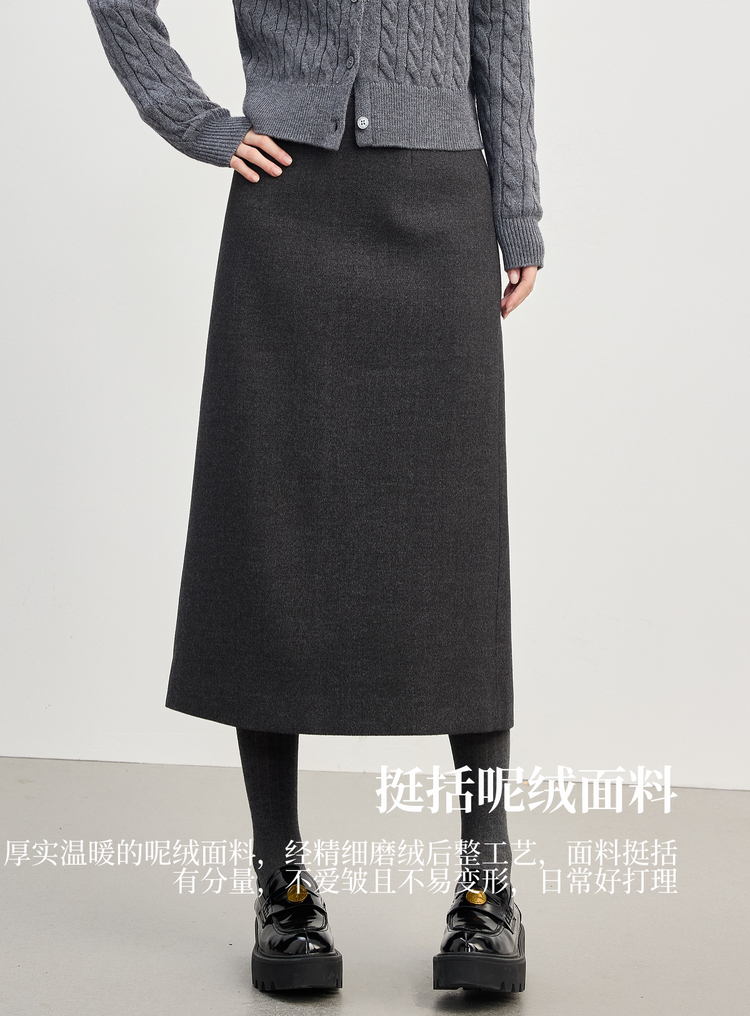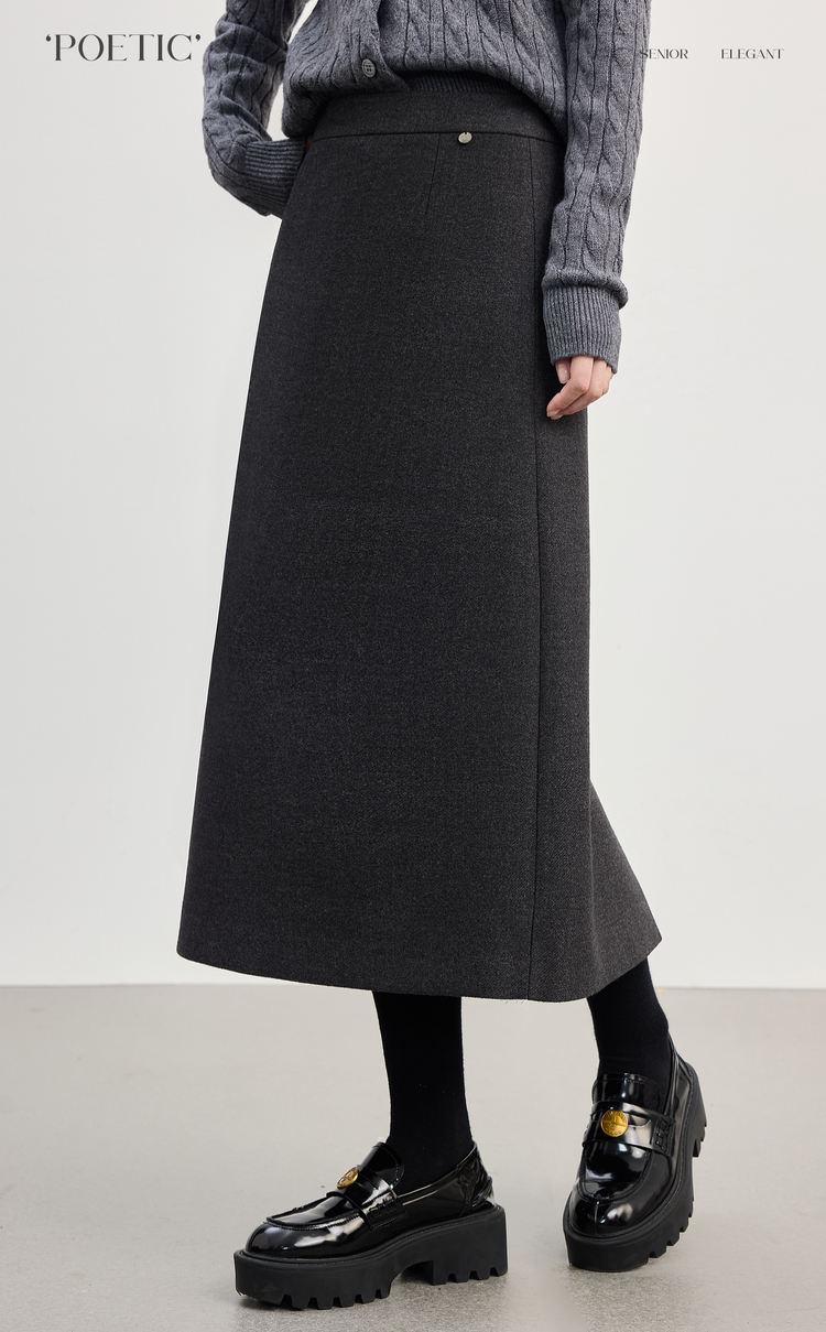 【10/15新品】熙世界通勤轻熟风灰色毛呢半身裙女秋冬季高腰显瘦a字包臀直筒裙
